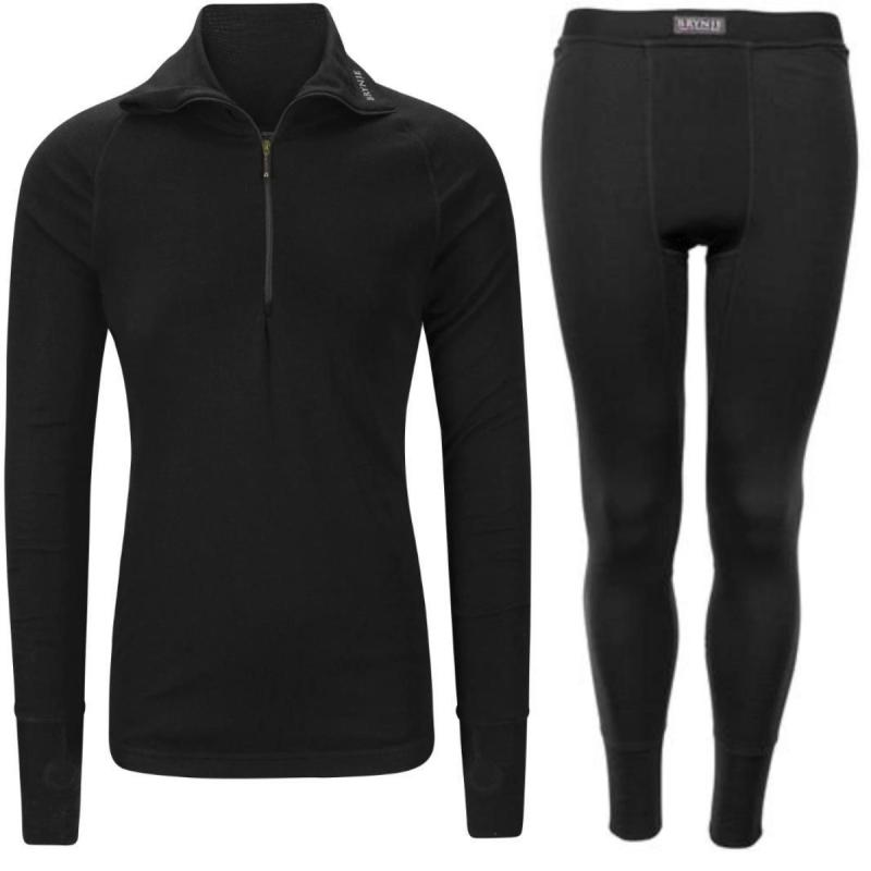 Varmt to-lags ullsett med høyhalset trøye med tommelhull og innlegg på skuldrene.