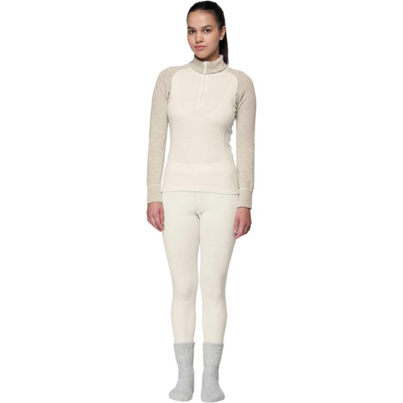 Devold Duo Active Merino 205 Zip Neck ullsett til dame består av et ytre lag med fin økologisk merinoull og et indre lag med ThermoLite®, en funksjonell fiber med optimale fukttransporterende egenskaper. Sammen med merinoullas isolerende egenskaper holder settet deg varm selv når du er våt og er dermed et ypperlig sett for utendørsaktivitet i vinterhalvåret. Flate sømmer sørger for god komfort. Plaggene kan vaskes i maskin og tørkes i tørketrommel.