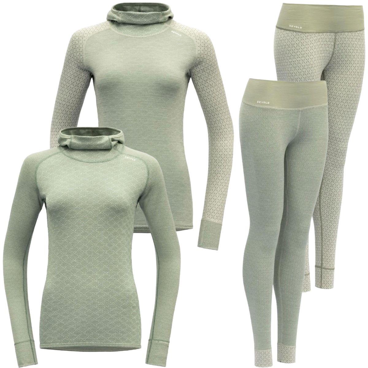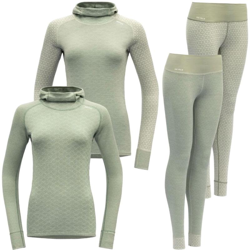 Devold Kvitegga Merino 230 Hoodie ullsett til dame er en av Devolds varmeste og tykkeste sett og passer ypperlig for aktiviteter med lavere intensitet hvor behovet for isolasjon er høyt. Settet er laget av 100% merinoull i jacquardstrikk og kan brukes på begge sider. Trøye med hette og forlenget rygg gir ekstra dekke, mens stillongs med bred strikk gir en behagelig og sikker passform. Settet kan vaskes i maskin.