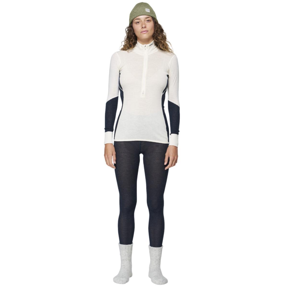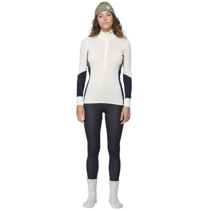 Devold Wool Mesh 190 Zip Neck ullsett til dame er designet for høyintensiv aktivitet som stiller høye krav til fukttransport, vekt og pusteevne. Nettingkonstruksjonen tørker raskt og frakter overskuddsvarme og fuktighet bort fra kroppen. Når temperaturen synker, isolerer nettingen godt ved hjelp av luftlommene som oppstår mellom huden og isolasjonslaget. Flate sømmer sørger for optimal komfort. Sette kan vaskes i maskin.