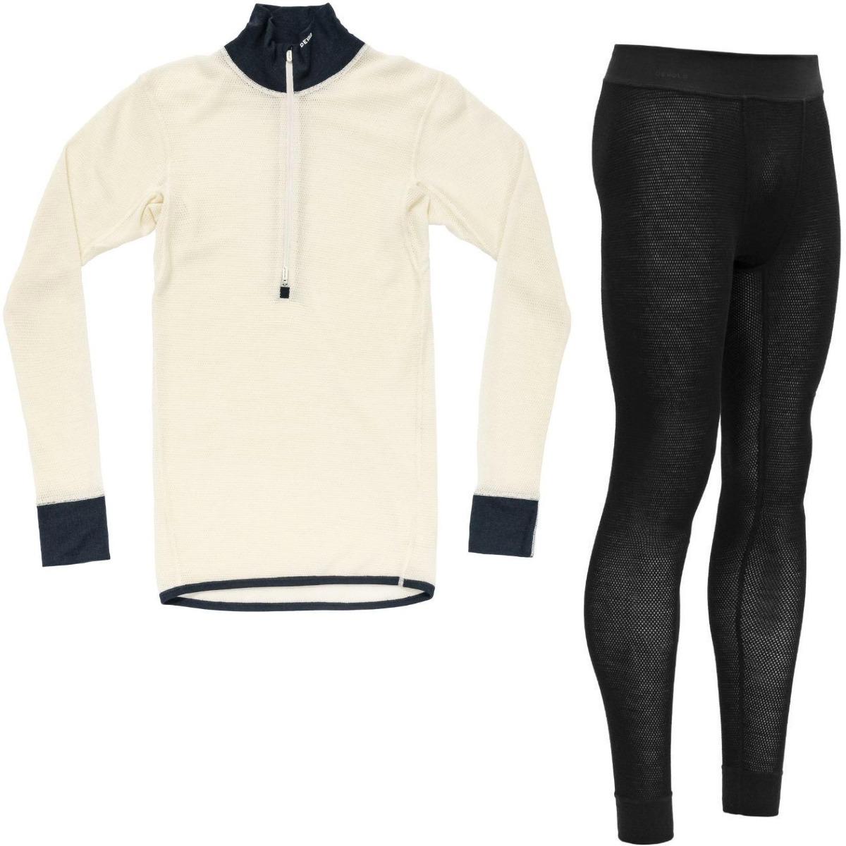 Devold Wool Mesh 190 Zip Neck ullsett til herre er designet for høyintensiv aktivitet som stiller høye krav til fukttransport, vekt og pusteevne. Nettingkonstruksjonen tørker raskt og frakter overskuddsvarme og fuktighet bort fra kroppen. Når temperaturen synker, isolerer nettingen godt ved hjelp av luftlommene som oppstår mellom huden og isolasjonslaget. Flate sømmer sørger for optimal komfort. Sette kan vaskes i maskin.