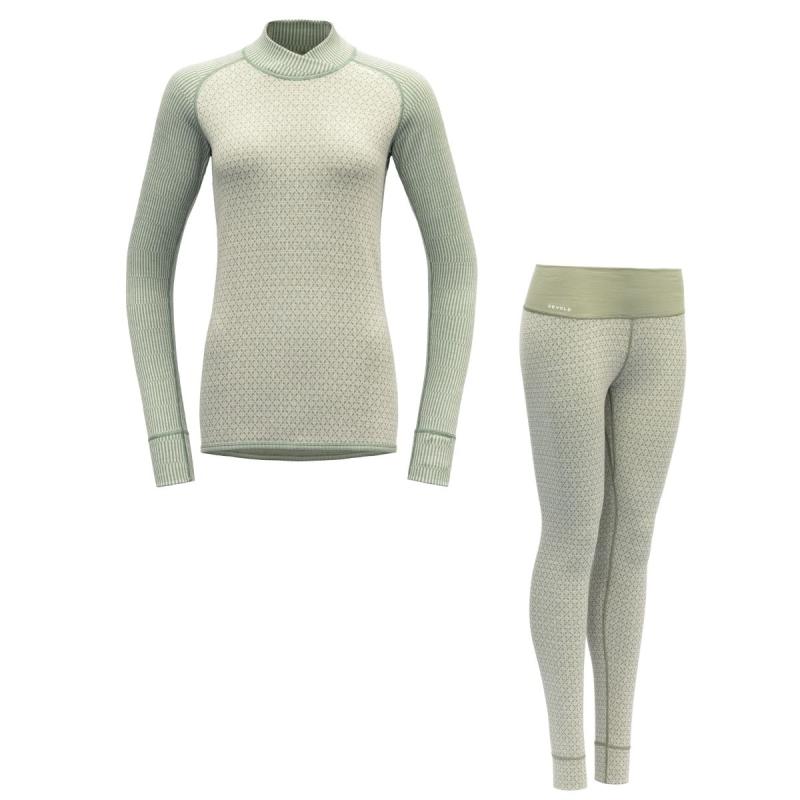 Devold Kvitegga Merino 230 ullsett til dame er et av Devolds varmeste og tykkeste ullsett og passer ypperlig for aktiviteter med lavere intensitet hvor behovet for isolasjon er høyt. Settet er laget av 100% merinoull i jacquardstrikk og kan brukes på begge sider. Kvitegga holder deg god og varm når gradene kryper nedover.