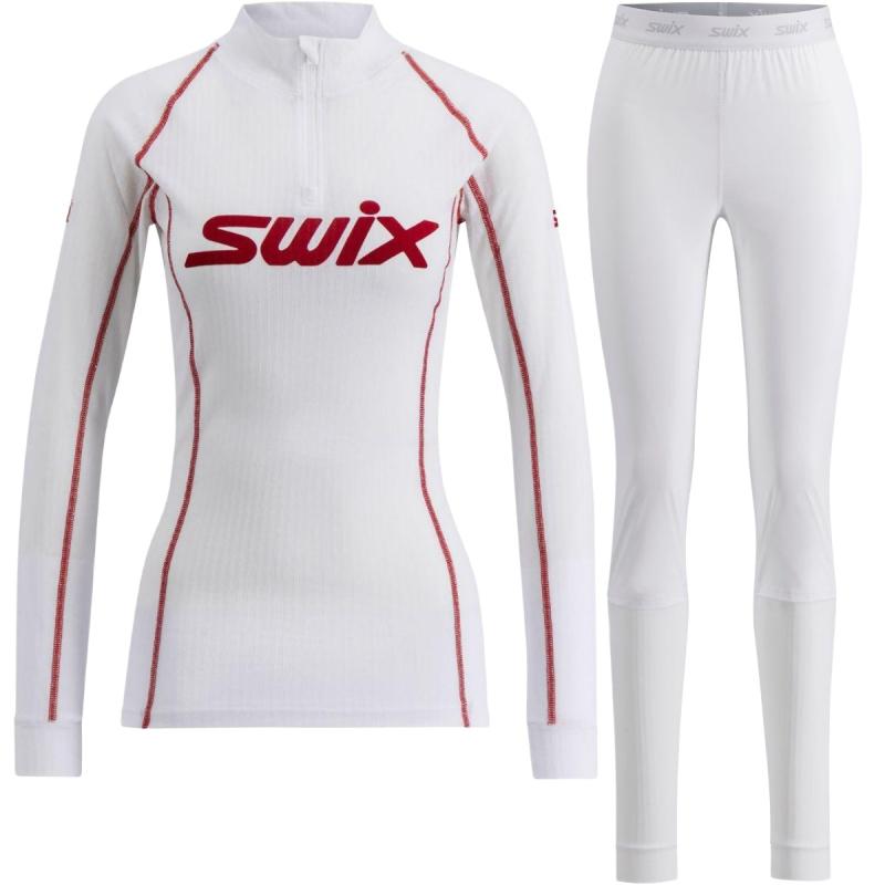 Swix RaceX Classic Half Zip undertøyssett til dame er designet for høy ytelse uansett intensitet, laget av pustende og hurtigtørkende materiale som holder deg tørr og komfortabel fra start til slutt. Ettersittende passform og god tøyelighet gir deg optimal bevegelsesfrihet, mens stillongs med bred strikk i livet og trøye med brede mansjetter og hals gir en behagelig passform. Hovedmateriale i dette settet består dessuten av 70% REPREVE® resirkulert fiber, fremstilt fra plastflasker samlet inn fra kystområder som mangler formelle avfalls- eller reguleringssystemer. RaceX Classic leverer den perfekte kombinasjonen av topp ytelse og komfort, ispedd en grønnere tilnærming til treningstøy.