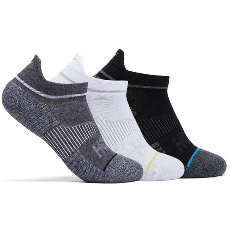 Hoka No-Show er en lav treningssokk med ekstra hold rundt mellomfoten og over vrista slik at den sitter godt på plass og hindrer friksjon gjennom økta. Ekstra høyde på flappen bak rundt akilles gir både god polstring rundt hælsena og gjør det enklere å ta sokken av og på. Formsydd hæl gir god passform og reflekslogo bak gir ekstra synlighet. Tåkonstruksjonen er helt sømløs, noe som både sikrer god bevegelighet for tærne, men også god komfort. Pakken inneholder 3 par sokker.