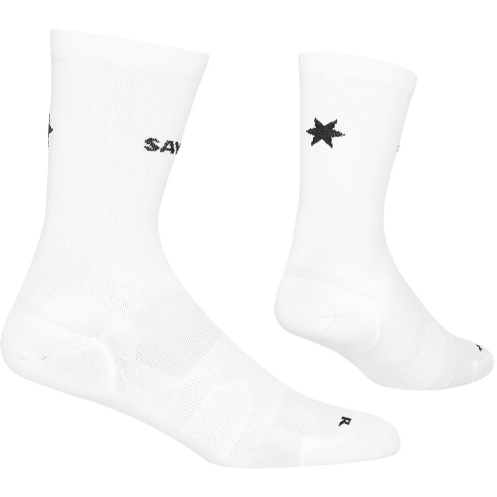 SAYSKY Combat High løpesokk til dame og herre er laget av en eksklusiv ultratynn garnblanding som gir sokkene en second-skin passform. Strategisk plasserte mesh-paneler kombinert med en avansert struktur leverer optimal luftgjennomstrømning og holder føttene avkjølte og tørre under selv de lengste løpeturene. 3D-designet hæl og sømløs konstruksjon rundt tærne gir en sikker passform og minimerer friksjon for motvirkning av gnagsår og blemmer, mens kompresjonsbånd rundt midtfoten gir målrettet støtte. Høy mansjett med lett kompresjon fremmer blodsirkulasjon og reduserer muskeltretthet.