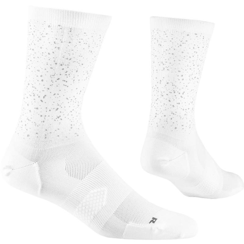 Ultralette og tynne løpesokker med lett kompresjon, her med heldekkende reflektivt mønster for økt synlighet.