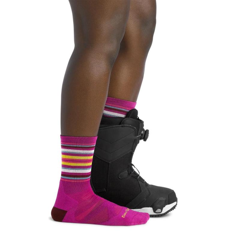 Darn Tough Oslo Nordic Boot skisokk til dame setter komfort i høysetet slik at du kan nyte skituren fullt ut. Sokken er utstyrt med ekstra padding rundt tærne, samt to paddede bånd over oversiden av foten for en behagelig og presis passform, mens fotbuestøtten motvirker tretthet. Merinoullblanding og pustende meshpaneler sørger for å holde føttene varme og tørre fra første til siste kilometer. Alle Darn Tough sokker er produsert i Vermont i USA.