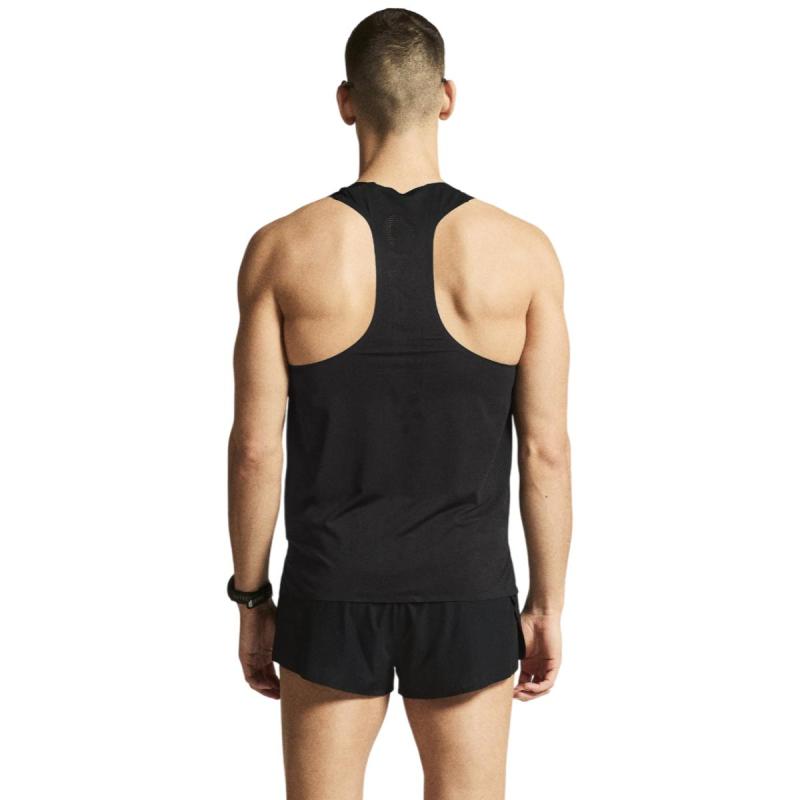 Craft Race Day løpesinglet 2 til herre er en avansert treningssinglet designet for maksimal ytelse og komfort under langdistanseløp. Funksjonelt jersey-materiale med strategisk plasserte perforeringer sørger for effektiv fukttransport og forbedret ventilasjon under høyintensiv aktivitet, mens teipede kanter ved hals- og ermeåpninger motvirker gnagsår slik at du kan fokusere fullt ut på løpingen. Splitt i sidene og racerback-design sørger for optimal bevegelsesfrihet.