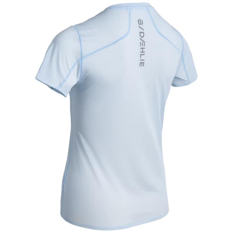 Dæhlie Air t-skjorte til dame er en ultralett kortermet løpetrøye laget av avansert teknisk 37.5®-materiale med uslåelig pusteevne og temperaturregulerende egenskaper. Trøyen holder deg avkjølt når det er varmt, og isolerer når det er kaldt, samtidig som det tørker utrolig raskt og er lukthemmende. Flate sømmer sørger for ypperlig komfort, mens reflektive detaljer gir økt synlighet under dårlige lysforhold.