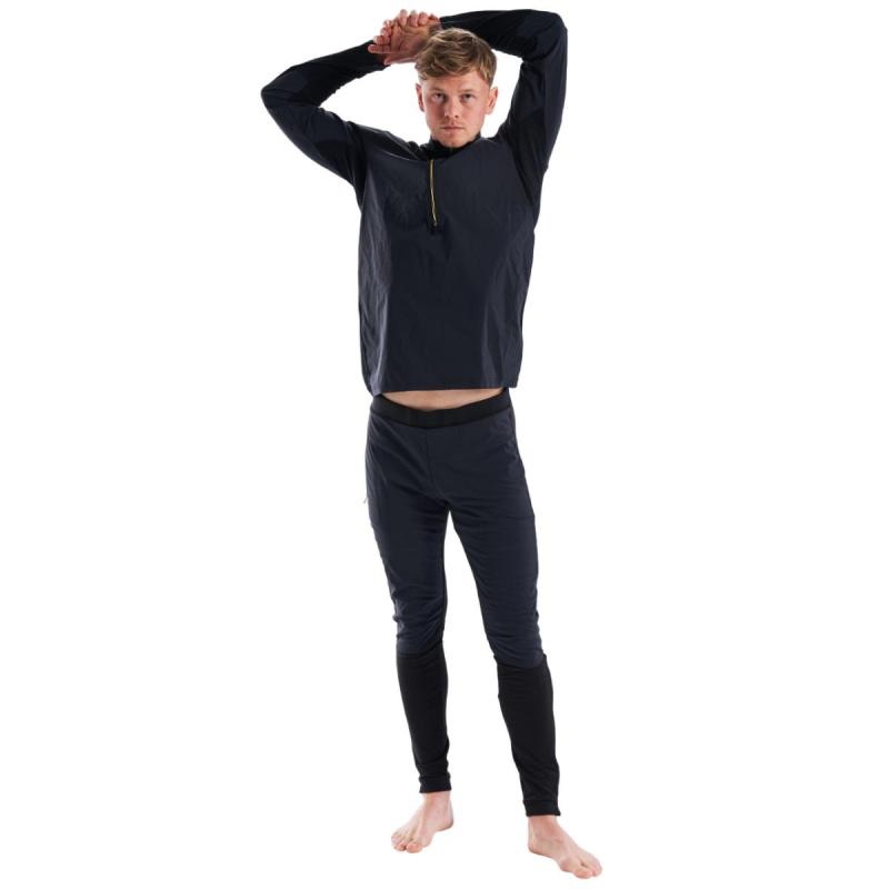Løpetrøye i merinoullmiks med vindavvisende cover i front og på ermene.