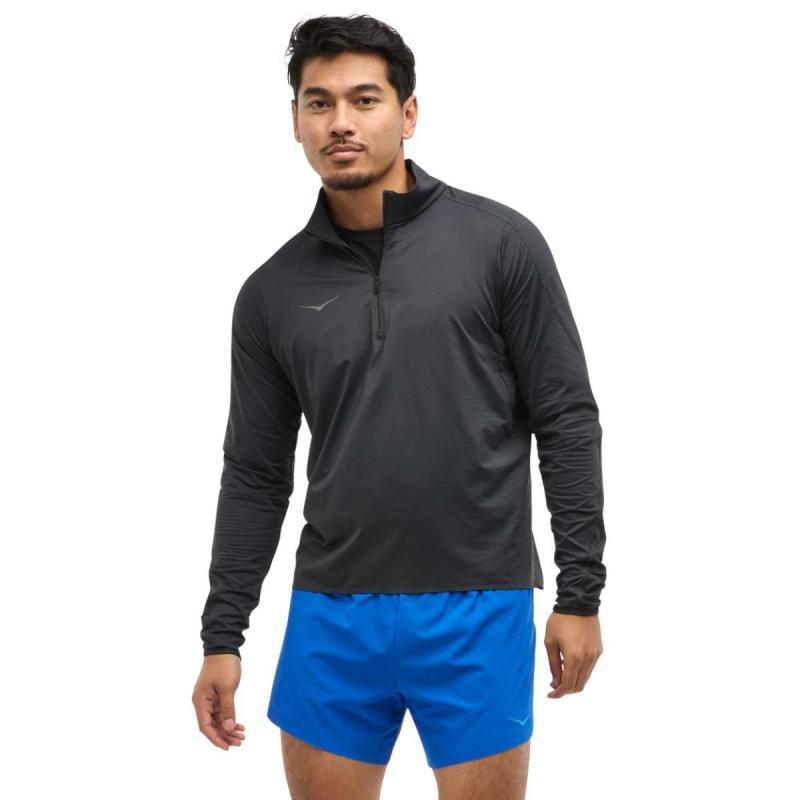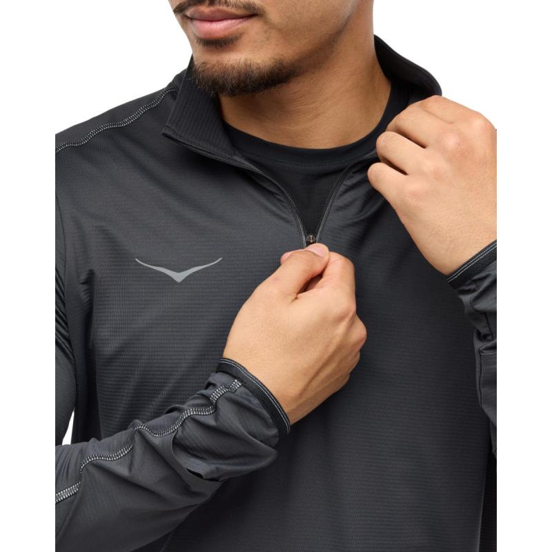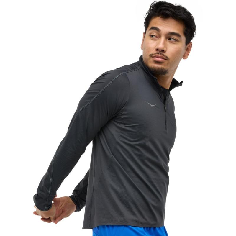 Hoka GlideTech Quarter Zip løpetrøye til herre er en allsidig trøye for mellomsesongene, ypperlig for ekstra varme på kjølige morgener eller sene treningsturer. Trøyen er laget av teknisk Creora Aqua-X™-materiale som innehar ypperlige fukttransporterende og hurtigtørkende egenskaper samtidig som det kjennes supermykt ut mot huden. HeiQ Mint Anti-Odor™-teknologi hindrer vond lukt fra å feste seg. Glidelås i kvart lengde gir effektiv lufting ved behov, mens åpning for klokke på venstre erme gjør det lett å holde øye med puls eller annen treningsinformasjon. En innvendig brystlomme gir sikker oppbevaring av nøkler og kort, mens reflektive detaljer sikrer ekstra synlighet under dårlige lysforhold.