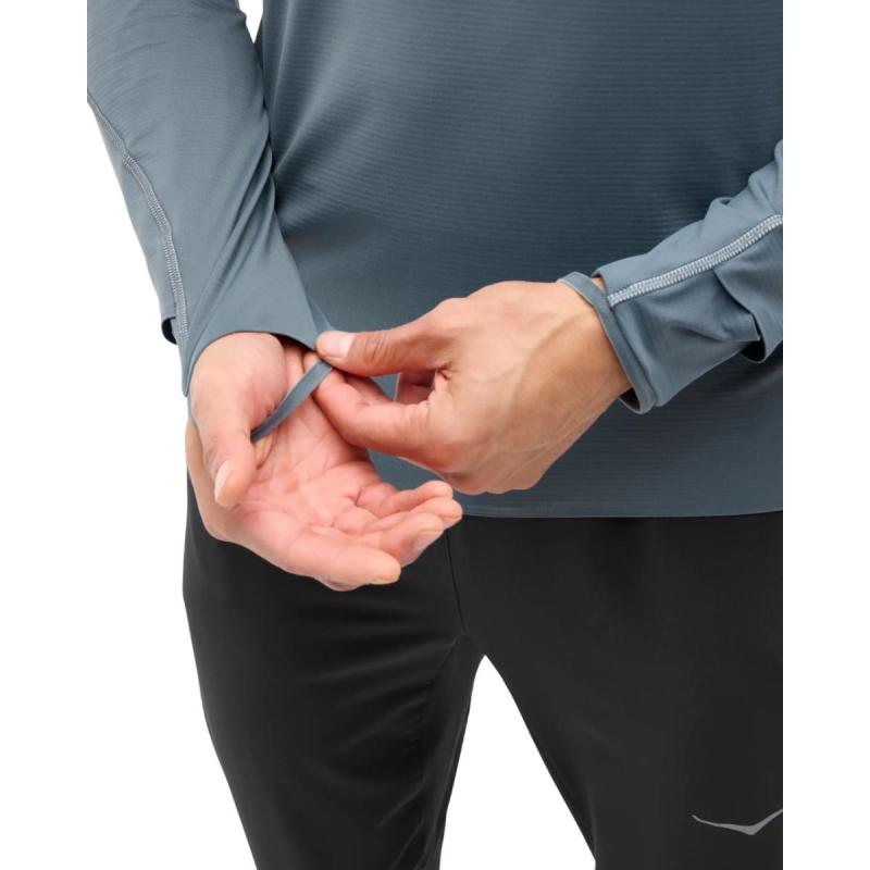 Hoka GlideTech Quarter Zip løpetrøye til herre er en allsidig trøye for mellomsesongene, ypperlig for ekstra varme på kjølige morgener eller sene treningsturer. Trøyen er laget av teknisk Creora Aqua-X™-materiale som innehar ypperlige fukttransporterende og hurtigtørkende egenskaper samtidig som det kjennes supermykt ut mot huden. HeiQ Mint Anti-Odor™-teknologi hindrer vond lukt fra å feste seg. Glidelås i kvart lengde gir effektiv lufting ved behov, mens åpning for klokke på venstre erme gjør det lett å holde øye med puls eller annen treningsinformasjon. En innvendig brystlomme gir sikker oppbevaring av nøkler og kort, mens reflektive detaljer sikrer ekstra synlighet under dårlige lysforhold.