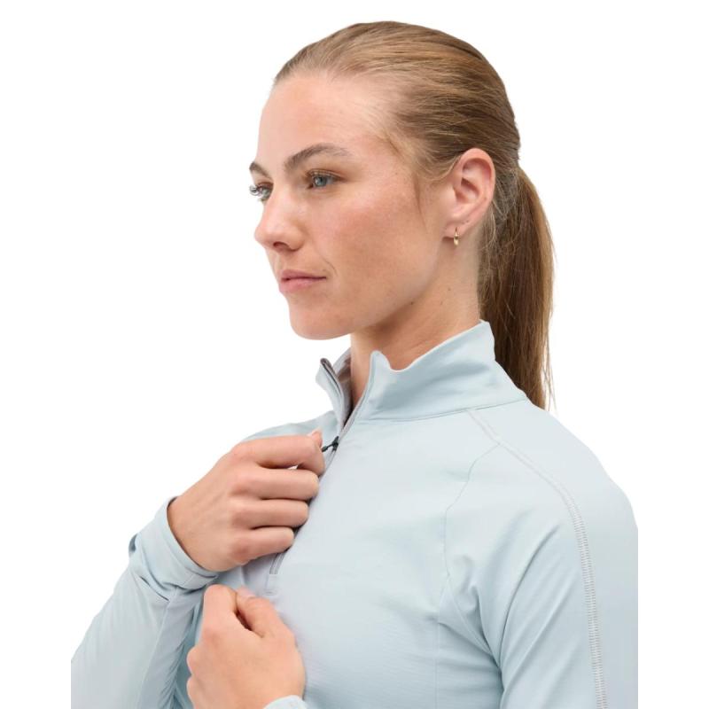 Hoka GlideTech Quarter Zip løpetrøye til dame er en allsidig trøye for mellomsesongene, ypperlig for ekstra varme på kjølige morgener eller sene treningsturer. Trøyen er laget av teknisk Creora Aqua-X™-materiale som innehar ypperlige fukttransporterende og hurtigtørkende egenskaper samtidig som det kjennes supermykt ut mot huden. HeiQ Mint Anti-Odor™-teknologi hindrer vond lukt fra å feste seg. Glidelås i kvart lengde gir effektiv lufting ved behov, mens åpning for klokke på venstre erme gjør det lett å holde øye med puls eller annen treningsinformasjon. En innvendig brystlomme gir sikker oppbevaring av nøkler og kort, mens reflektive detaljer sikrer ekstra synlighet under dårlige lysforhold.