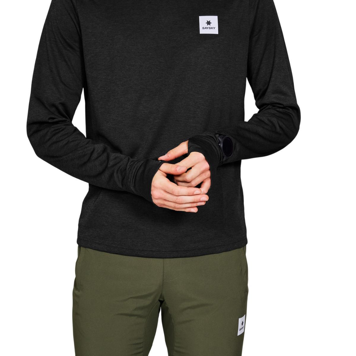SAYSKY Clean Flow langermet løpetrøye til herre er laget av et høyytelses og lett materiale med ypperlige fukttransporterende egenskaper som holder deg tørr fra start til slutt. God stretch og en myk overflate gir en behagelig passform, mens lange mansjetter med tommelhull gir ekstra beskyttelse. Trøyen er dessuten utstyrt med en praktisk åpning på ermet som enkelt lar deg sjekke smartklokka. SAYSKY Clean Flow langermet løpetrøye egner seg ypperlig som ytterste lag på kjølige vår- og forsommerdager men kan også benyttes som mellomlag i vinterhalvåret.