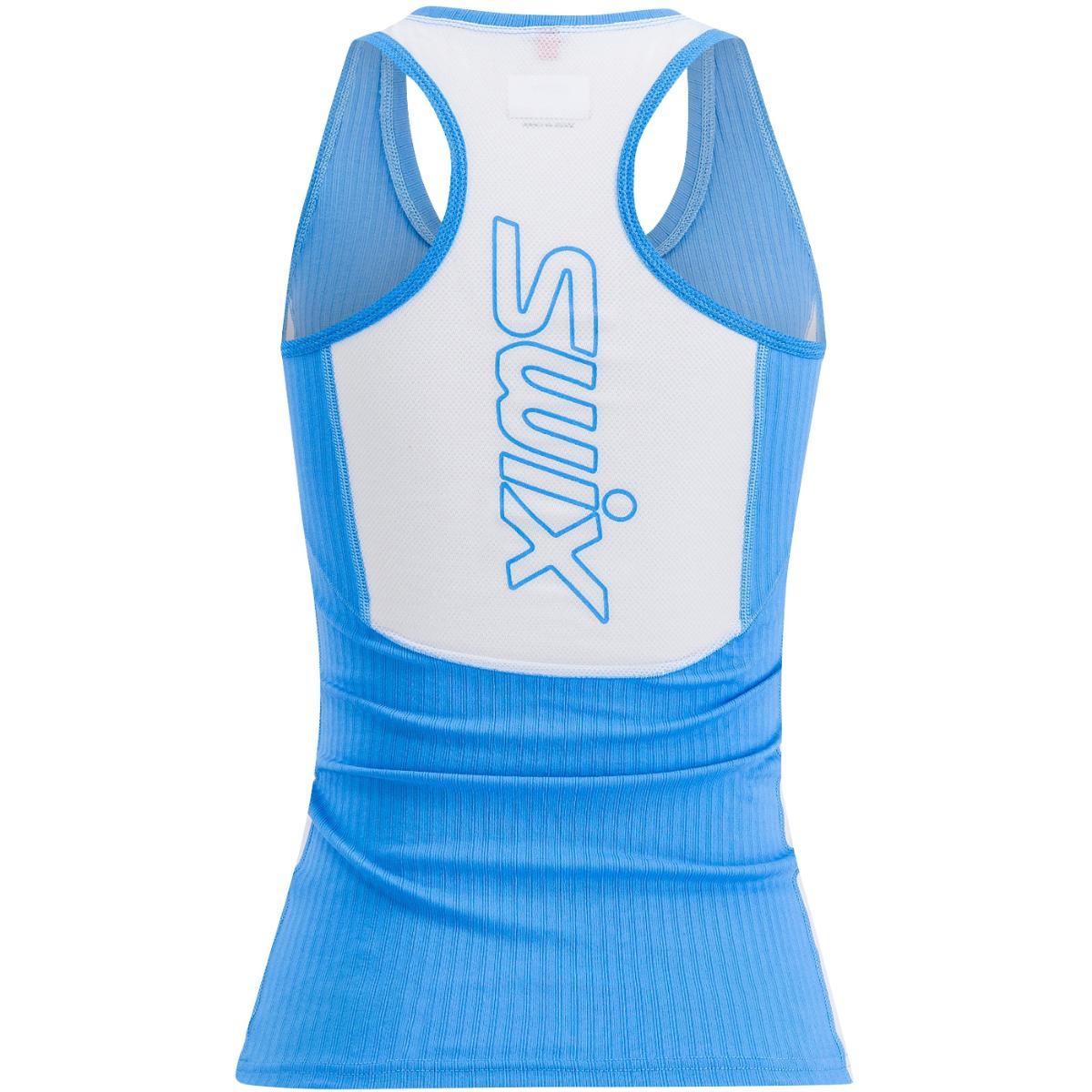 Swix RaceX Light singlet til dame er designet for høy ytelse under intensive økter i varmt vær, laget av pustende og hurtigtørkende materiale som holder deg tørr og komfortabel fra start til slutt. Light-versjonen er utstyrt med strategisk plasserte mesh-paneler bak og i sidene for optimal regulering av kroppstemperatur. Ettersittende passform og god tøyelighet gir deg optimal bevegelsesfrihet, mens racerback-designet sikrer en behagelig passform. Hovedmateriale i dette plagget består dessuten av 70% REPREVE® resirkulert fiber, fremstilt fra plastflasker samlet inn fra kystområder som mangler formelle avfalls- eller reguleringssystemer. RaceX Light leverer den perfekte kombinasjonen av topp ytelse og komfort, ispedd en grønnere tilnærming til treningstøy.