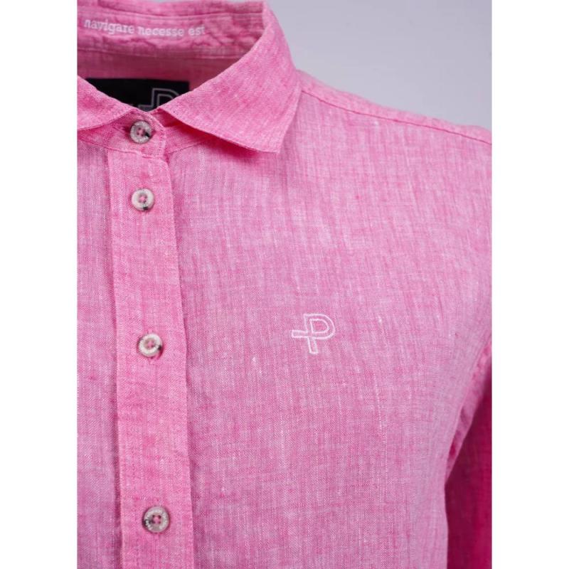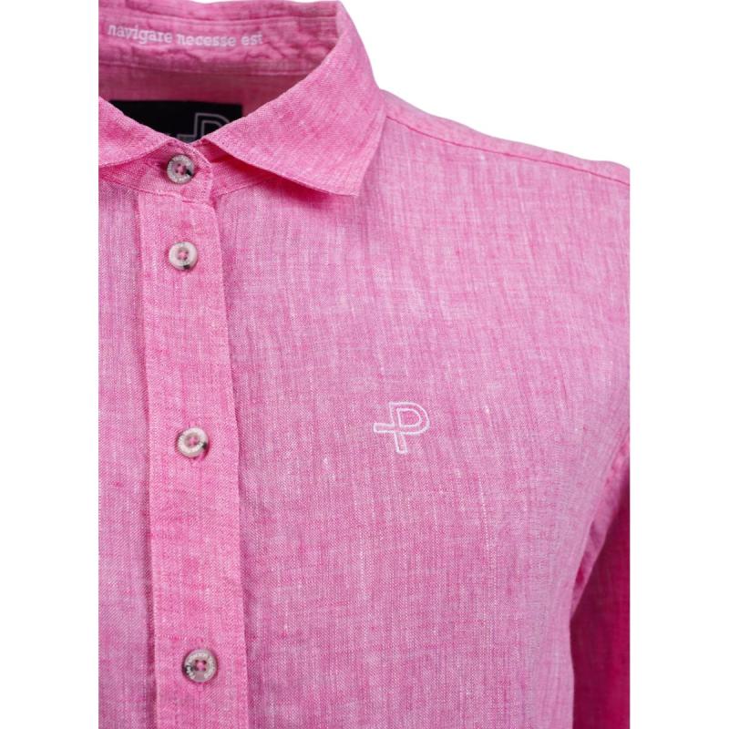 Pelle P Breeze linskjorte til dame er laget av myk og luftig 100% lin med en oversize-passform som gjør seg like godt til jobbantrekk som til late sommerdager ved sjøen. Minimalistisk krage og vevd P-merke på brystet og i nakken gir et stilrent utseende.