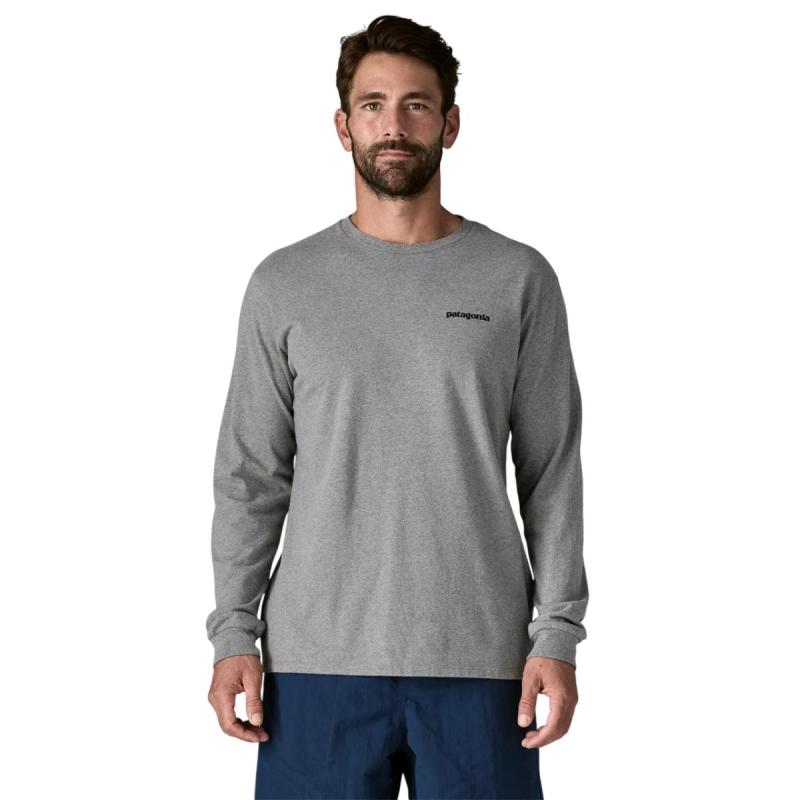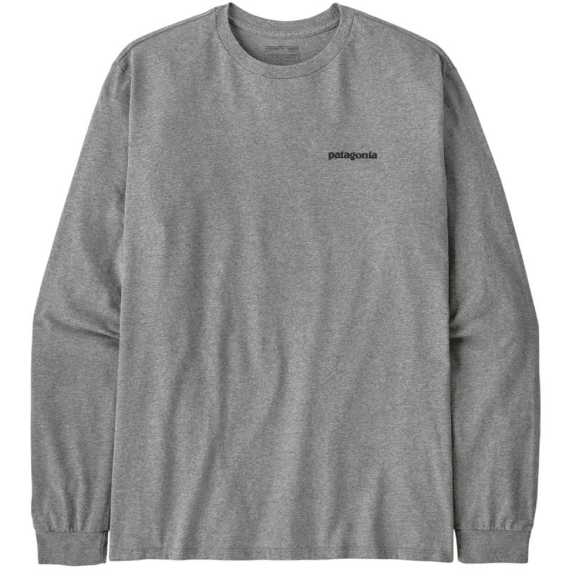 Patagonia P-6 Logo Responsibili-Tee® langermet trøye til herre er en klassisk trøye laget utelukkende av resirkulerte materialer. Ved å benytte seg av restematerialer og resirkulerte plastflasker har Patagonia redusert behovet for nye råmaterialer for en trøye som både føles god å ha på og gjør godt for miljøet. P-6 Logo Responsibili-Tee® er dessuten produsert ved en Fair Trade Certified™-fabrikk. Materialene er også bluesign®-godkjente.