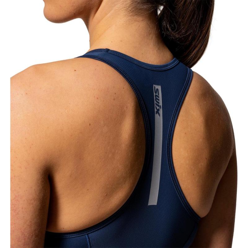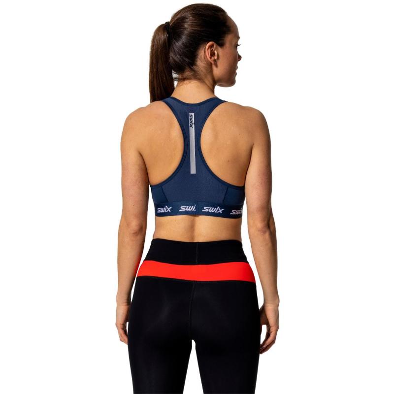 Swix Roadline sports-BH gir god beskyttelse og lett støtte for høyintensive rulleskiøkter og løpeturer. Sports-BHen er laget av mykt og lett materiale med gode fukttransporterende egenskaper og strategisk plasserte sømmer for å minimere sjansen for gnagsår. Mesh-panel på ryggen sørger for ekstra ventilasjon. Egner seg også for treningsstudio.
