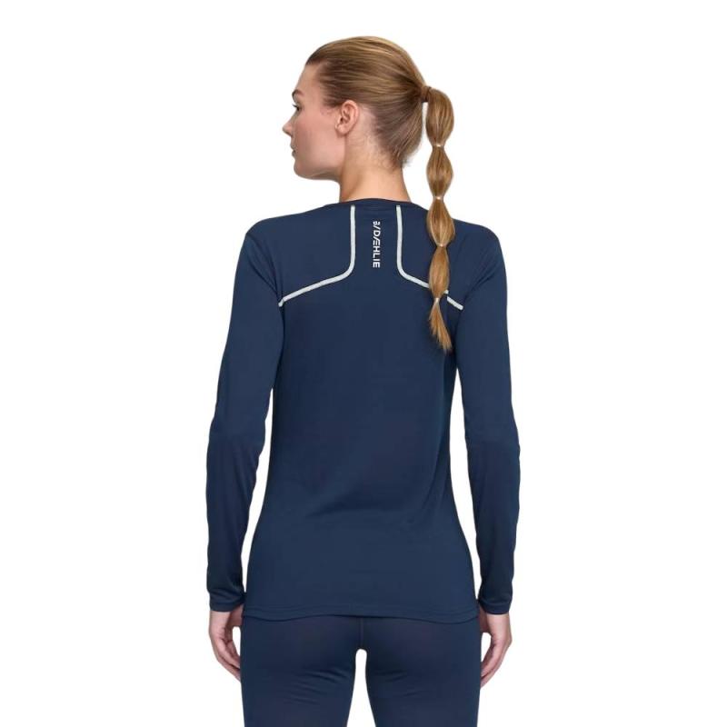 Dæhlie Training Wool Mix langermet trøye til dame er utviklet for lange økter, laget av en optimal blanding av 20% ull og 80% syntetiske materialer for ypperlig temperaturregulering og fuktighetstransport. Fireveis stretch sikrer optimal bevegelsesfrihet, mens materialblandingens hurtigtørkende egenskaper holder deg komfortabel og tørr under hele økten. Flate sømmer minimerer sjansen for gnaging.