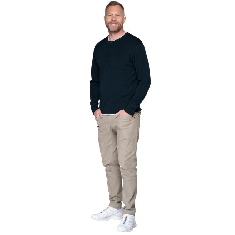 Devold Henley langermet ulltrøye til dame og herre er et nikk til den klassiske norske "bestefartrøya" fra 50-tallet. Med et stilig retrodesign, rund hals med knappestolpe og løs passform i naturlige farger kan denne trøya brukes både som genser og som mellomlag. Myk merinoull sikrer en behagelig passform og ypperlig isolajon og temperaturregulering.