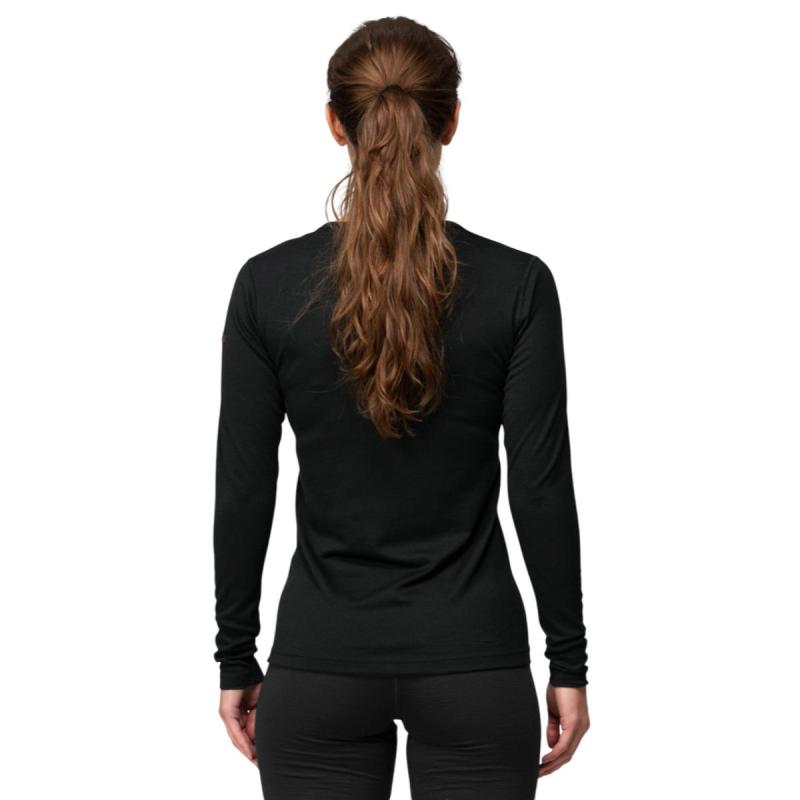 Devold Breeze Merino 150 ulltrøye til dame er en ultralett og myk langermet ulltrøye som egner seg godt på varmere dager som eneste lag, eller som et isolerende lag når temperaturen synker. Merinoull puster og regulerer kroppstemperatur etter aktivitetsnivå, den er dessuten også naturlig motstandsdyktig mot lukt, noe som gjør at plagget kan brukes flere ganger uten at du nødvendigvis trenger å vaske det. Trøyen kan vaskes i maskin og tørkes i tørketrommel.