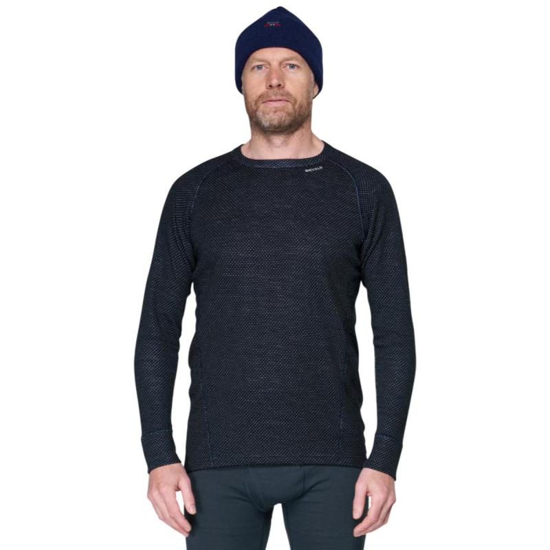 Devold Duo Active Merino 205 ulltrøye til herre består av et ytre lag med fin økologisk merinoull og et indre lag med ThermoLite®, en funksjonell fiber med optimale fukttransporterende egenskaper. Sammen med merinoullas isolerende egenskaper holder trøyen deg varm selv når du er våt og er dermed et ypperlig plagg for utendørsaktivitet i vinterhalvåret. Flate sømmer sørger for god komfort. Plagget kan vaskes i maskin og tørkes i tørketrommel.