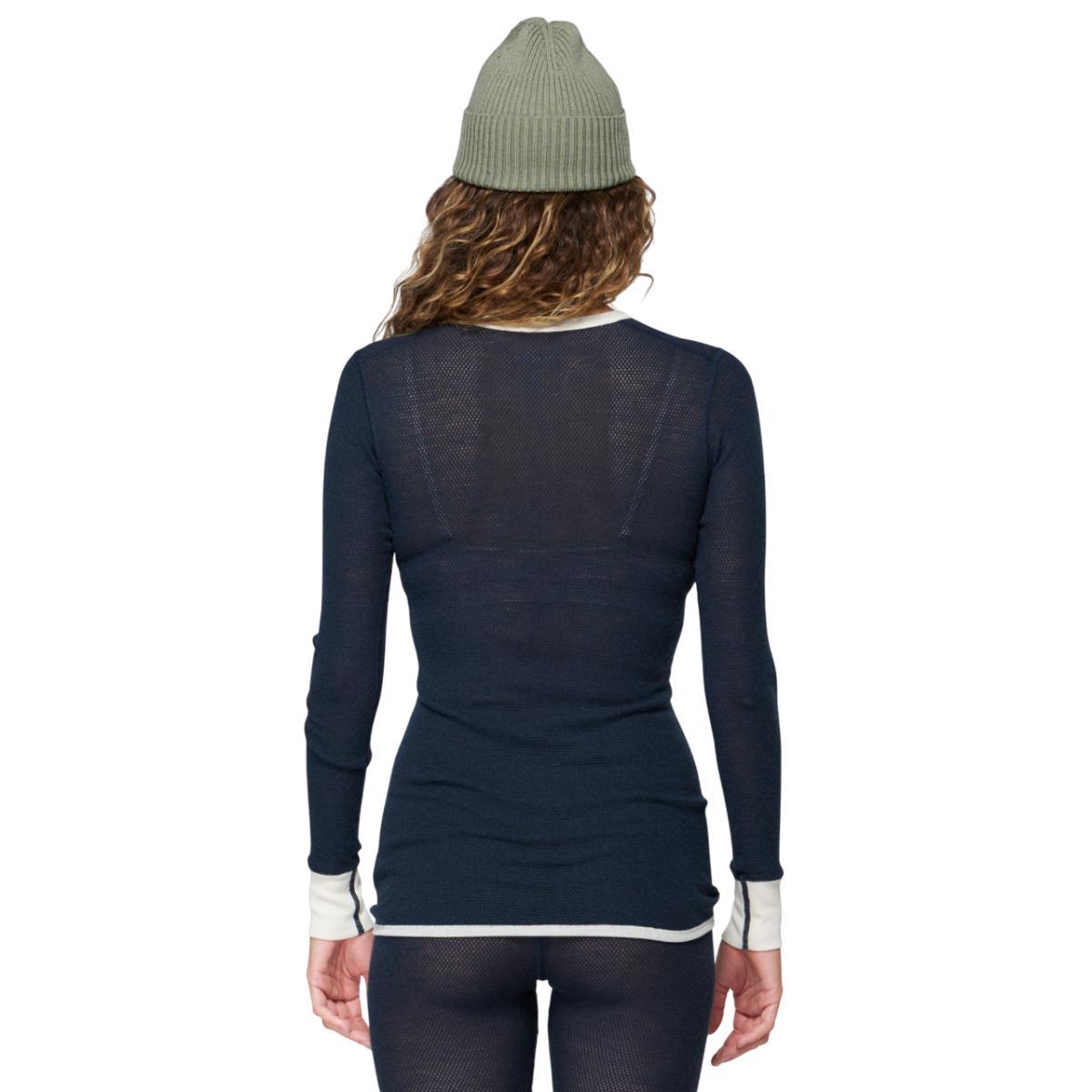 Devold Wool Mesh 190 ulltrøye til dame er designet for høyintensiv aktivitet som stiller høye krav til fukttransport, vekt og pusteevne. Nettingkonstruksjonen tørker raskt og frakter overskuddsvarme og fuktighet bort fra kroppen. Når temperaturen synker, isolerer nettingen godt ved hjelp av luftlommene som oppstår mellom huden og isolasjonslaget. Flatstrikket panel over brystet gir ekstra isolasjon. Flate sømmer sørger for optimal komfort. Forlenget ryggparti sørger for godt dekke. Trøyen kan vaskes i maskin.