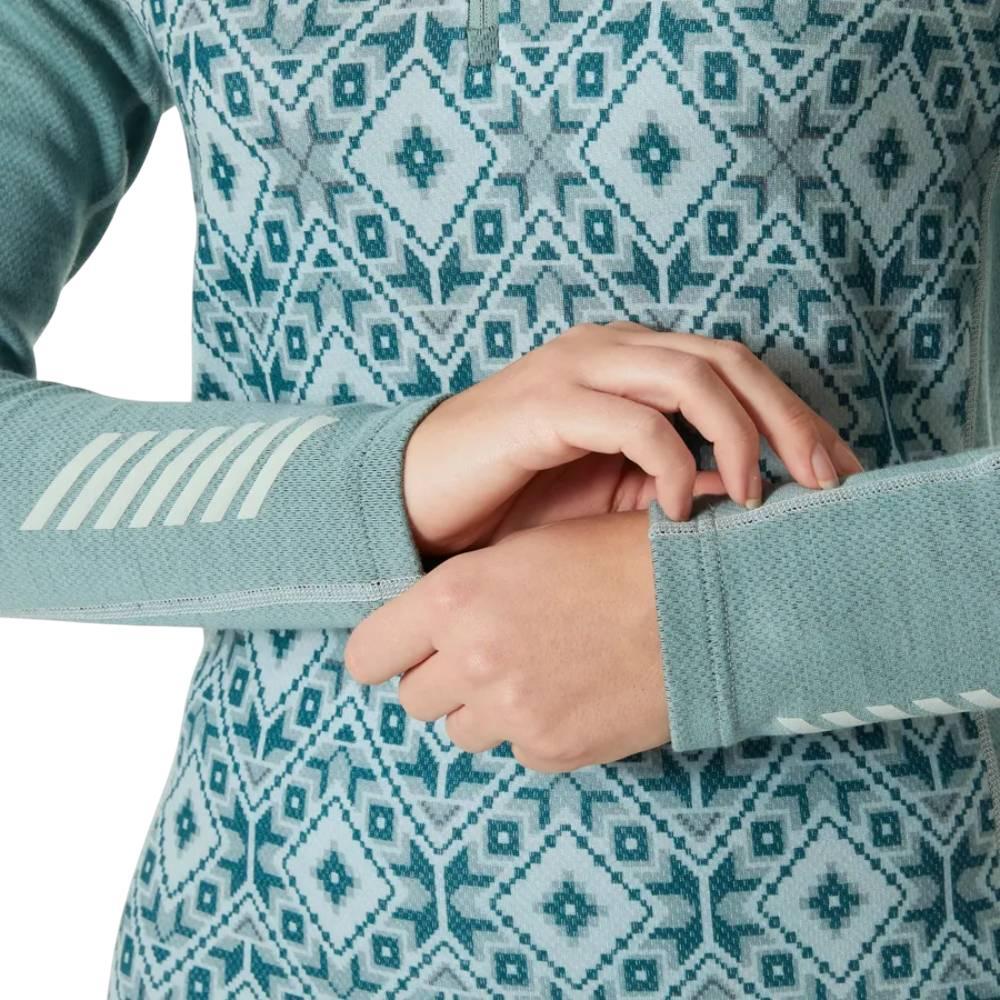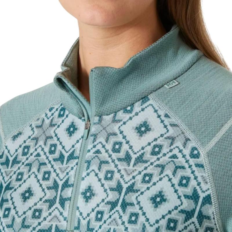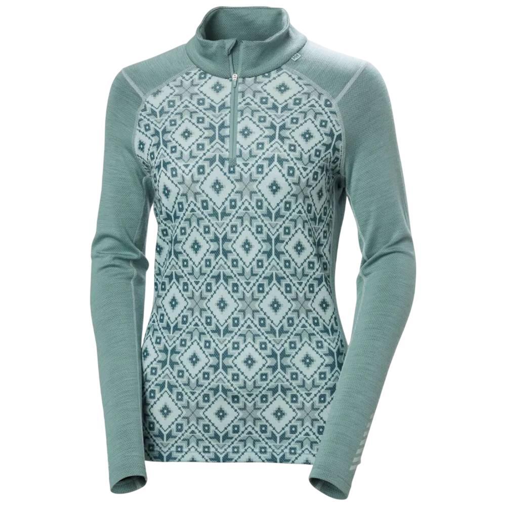 Helly Hansen Lifa® Merino Midweight Graphic 1/2 Zip trøye til dame er en allsidig undertrøye med hals for kaldt vær. Trøyen består av en 2-lags konstruksjon med merinoull ytterst og fuktighetstransporterende LIFA®-fibre innerst. Dette gir en undertrøye med ypperlige varmende, pustende og fuktighetsregulerende egenskaper. Flatlock-sømmer sørger for optimal komfort. Graphic-serien består av undertøy med kule trykk, for hvem har sagt at basic må være kjedelig?