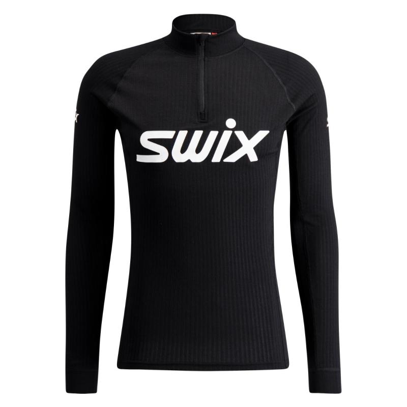Swix RaceX Classic Half Zip langermet trøye til herre er designet for høy ytelse uansett intensitet, laget av pustende og hurtigtørkende materiale som holder deg tørr og komfortabel fra start til slutt. Ettersittende passform og god tøyelighet gir deg optimal bevegelsesfrihet, mens brede mansjetter høy hals gir en behagelig passform. Hovedmateriale i dette plagget består dessuten av 70% REPREVE® resirkulert fiber, fremstilt fra plastflasker samlet inn fra kystområder som mangler formelle avfalls- eller reguleringssystemer. RaceX Classic leverer den perfekte kombinasjonen av topp ytelse og komfort, ispedd en grønnere tilnærming til treningstøy.