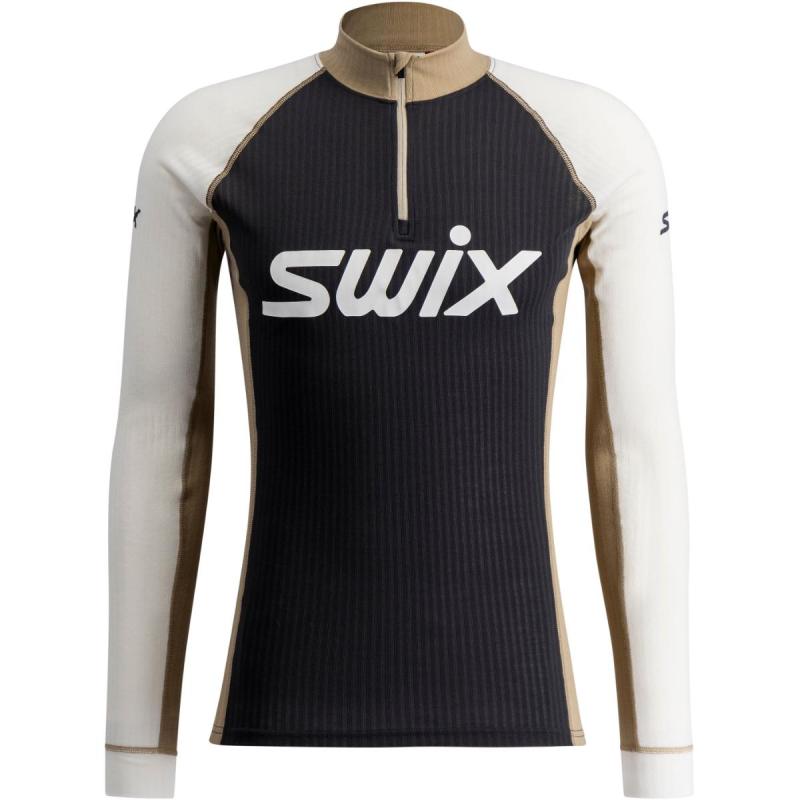 Swix RaceX Classic Half Zip langermet trøye til herre er designet for høy ytelse uansett intensitet, laget av pustende og hurtigtørkende materiale som holder deg tørr og komfortabel fra start til slutt. Ettersittende passform og god tøyelighet gir deg optimal bevegelsesfrihet, mens brede mansjetter høy hals gir en behagelig passform. Hovedmateriale i dette plagget består dessuten av 70% REPREVE® resirkulert fiber, fremstilt fra plastflasker samlet inn fra kystområder som mangler formelle avfalls- eller reguleringssystemer. RaceX Classic leverer den perfekte kombinasjonen av topp ytelse og komfort, ispedd en grønnere tilnærming til treningstøy.