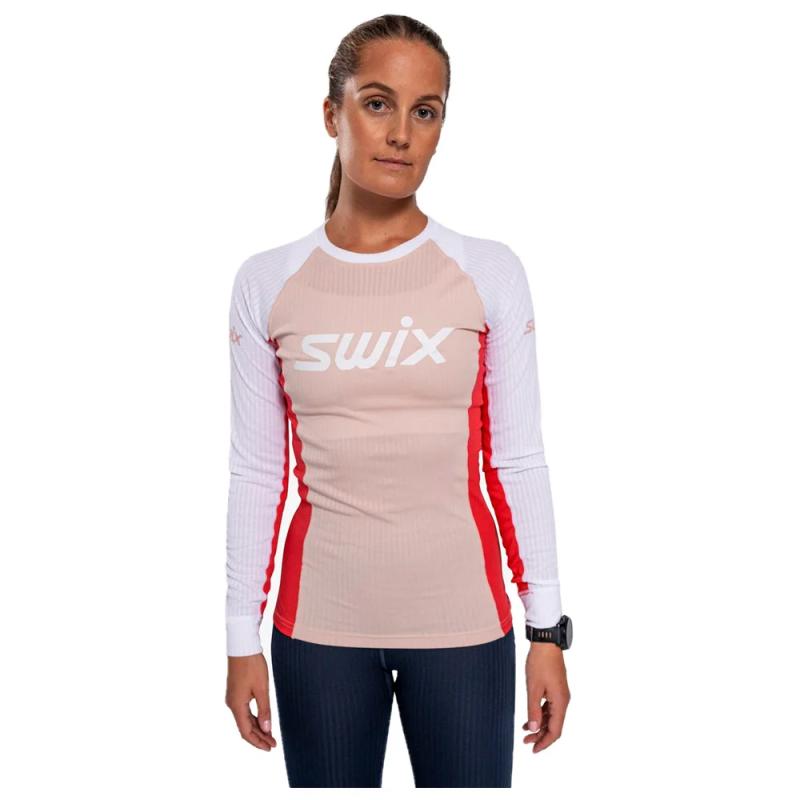 Swix RaceX Classic langermet trøye til dame er en del av Swix' original superundertøyserie med smal passform og god stretch for optimal bevegelsesfrihet. Trøyen er laget av hurtigtørkende og lett materiale med god pusteevne, og egner seg både til høyintensiv trening på kalde dager og roligere aktiviteter når det er mildt. Trøyen består av 70% REPREVE® resirkulert Performance Fiber, som er laget av plastflasker samlet inn fra kystområder som mangler formelle avfalls- eller reguleringssytemer.