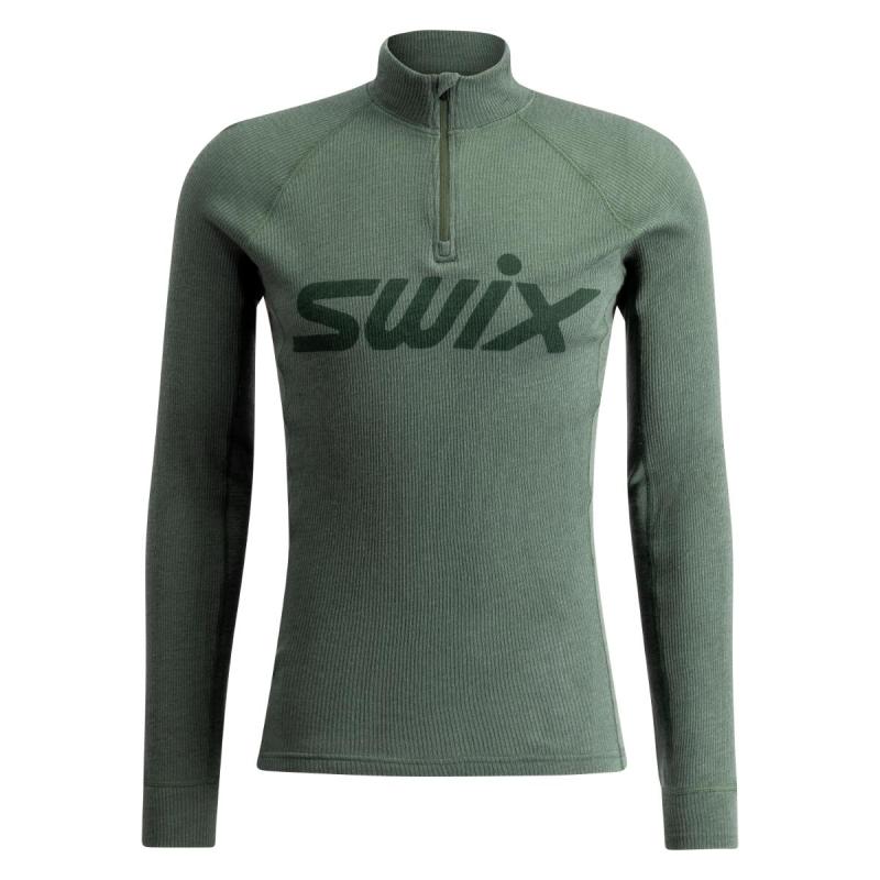 Swix RaceX Merino Half Zip ulltrøye til herre er en varmere versjon av Swix' klassiske superundertøy, perfekt for lavere aktivitetsnivå eller høyintensiv trening på ekstra kalde dager. Den myke merinoulla sørger for god temperaturregulering og fuktransport, mens polyamid leverer ekstra slitestyrke. Ribbestrikket konstruksjon og elastiske mansjetter gir god bevegelsesfrihet. Glidelås i halsen gir mulighet for ekstra ventilasjon ved behov.