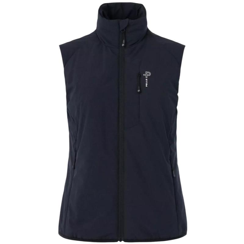 Pelle P Arolla Aero vattert vest til dame er en teknisk vest laget av Hi:Res SWR2L vindtett og vannavvisende stretch-materiale med delvis biobasert Sorona Aura®- og resirkulert polyester-isolasjon. To sidelommer og én brystlomme gir god plass til oppbevaring av verdisaker og andre småting, mens elastiske ermeåpninger og nedre del kropp, kombinert med en nærtsittende hals sørger for å holde varmen inne og sur vind ute. Vesten leveres med en pakkpose som gjør at den enkelt kan pakkes sammen og stues ned i en sekk for umiddelbar varme og vindbeskyttelse ved behov. Et ypperlig mellomplagg på kalde vinterdager som også gjør seg godt som ytterste lag om våren og høsten.