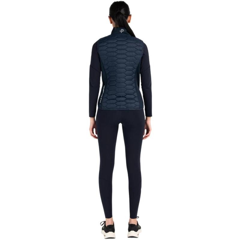 Pelle P Levo Hybrid vest til dame er en varm og komfortabel vest med kviltet vindavvisende materiale i front og på ryggen, og tøyelige paneler i siden, ypperlig både som teknisk mellomlag og som ytterste lag på kjølige vår- og sommerdager. Børstet innside sørger for effektiv fukttransport og ekstra varme, mens fireveis stretch sikrer ypperlig bevegelsesfrihet. To sidelommer med glidelås gir sikker oppbevaring av verdisaker.
