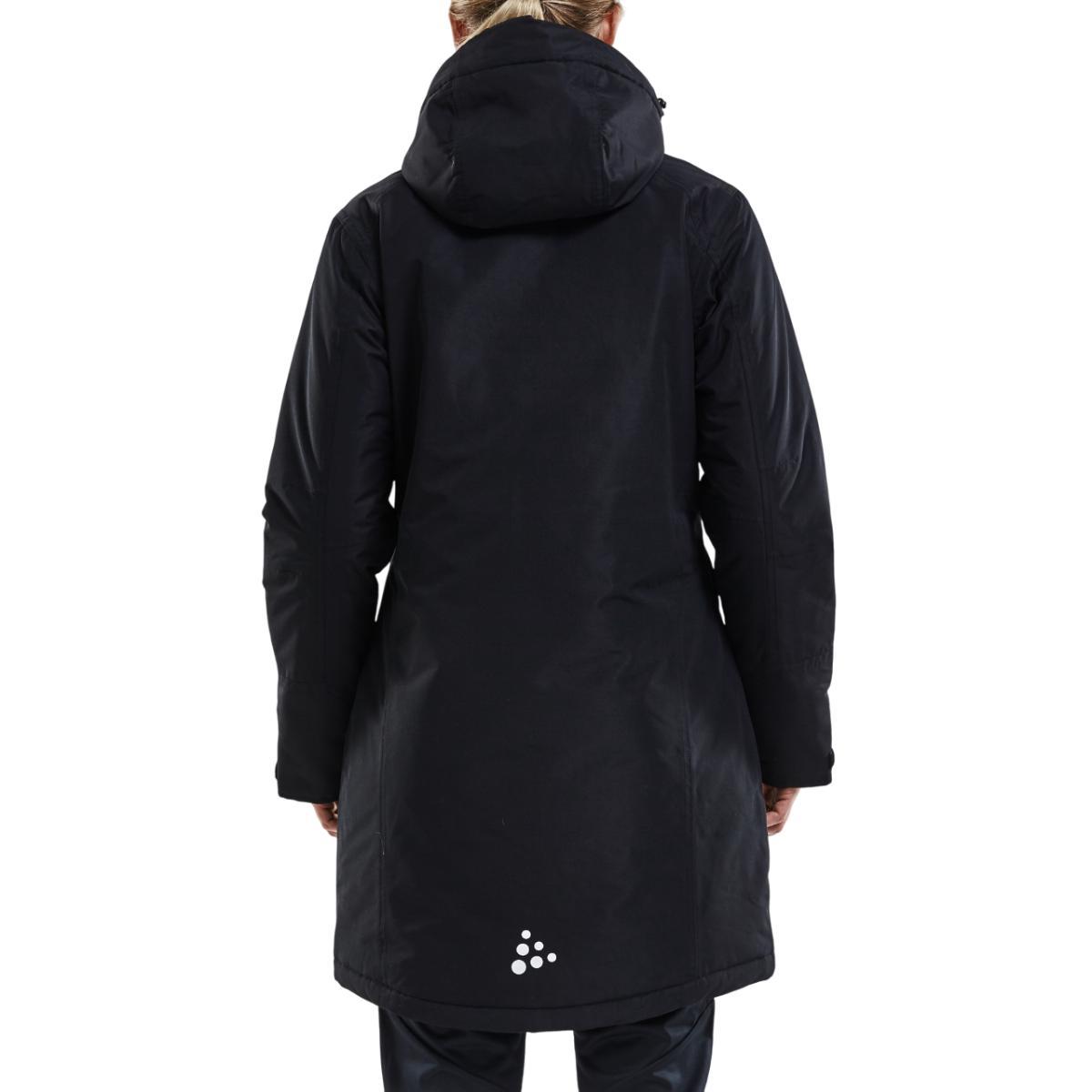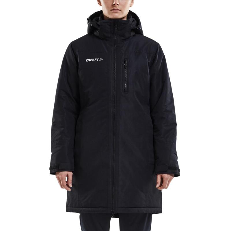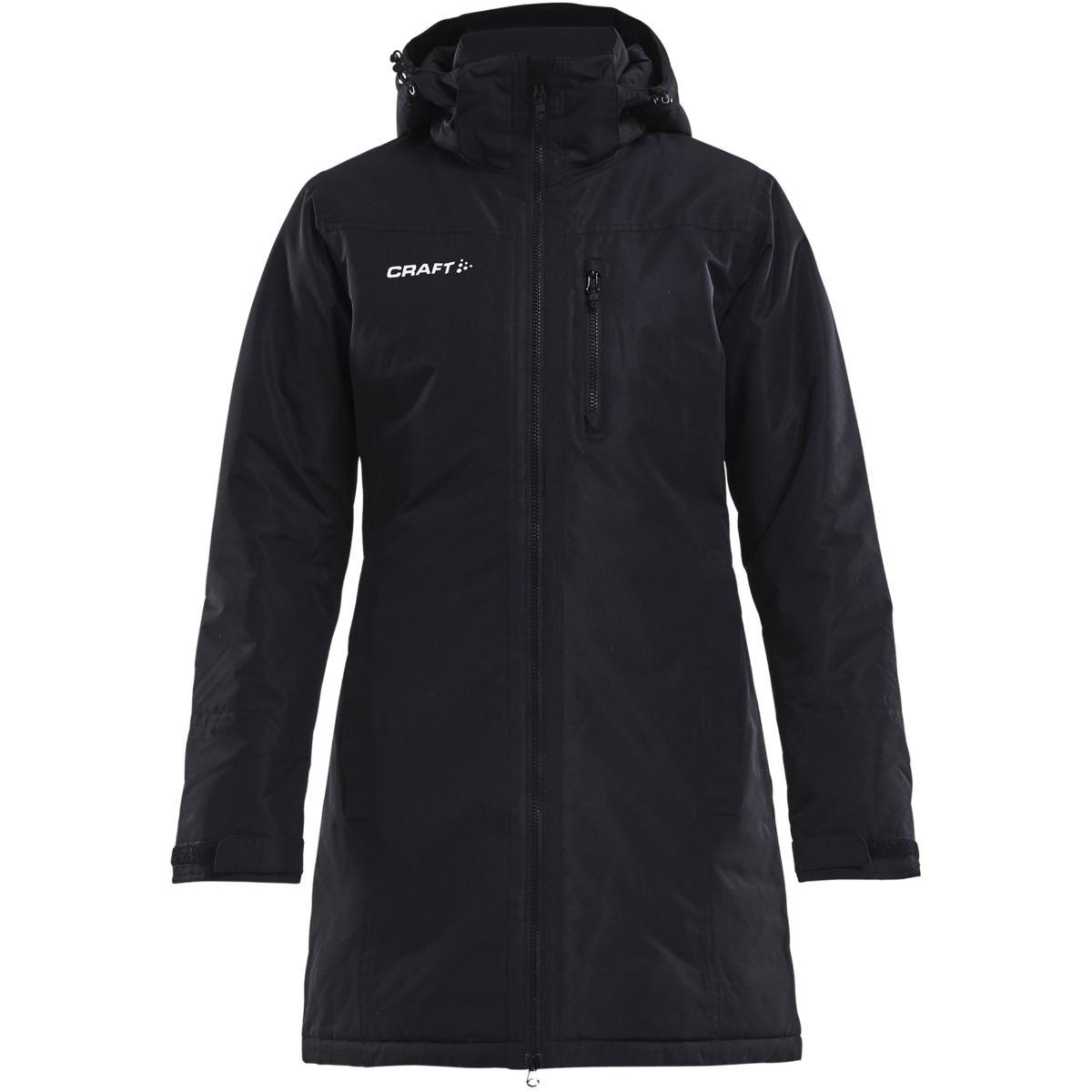 Craft Parkas til dame er en vattert parkas av slitesterkt materiale som passer perfekt til oppvarming eller for å holde varmen på innbytterbenken, som trener, som en del av støtteapparat, eller som tilskuer. Toveis glidelås i front gir enkel lufting ved behov, mens den avtakbare hetten gir god værbeskyttelse ved behov. Glidelåslommer i siden og på brystet gir trygg oppbevaring av verdisaker og små eiendeler.