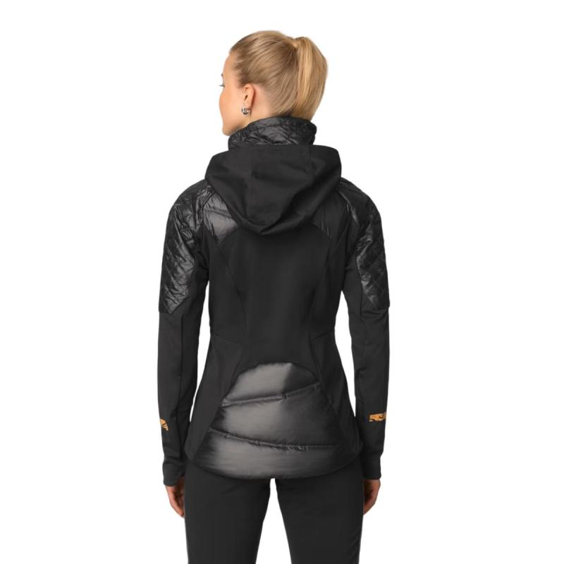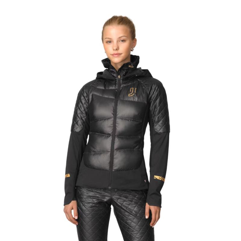 Johaug Advance Primaloft skijakke er laget av meget elastisk softshell-materiale med dunisolert front og bakside, samt PrimaLoft® Gold-paneler på ermer og i kragen for god varme på ekstra kjølige dager. Elastiske paneler på underarmene og ryggen sørger for optimal bevegelsesfrihet, mens avtakbar og justerbar hette gir ekstra beskyttelse mot vær og vind. Forlenget rygg gir godt dekke, mens lommer med glidelås i front gir trygg oppbevaring av verdisaker eller oppvarming av kalde hender. Flatterende feminint snitt og reflektive detaljer leverer stil og synlighet uansett forhold.