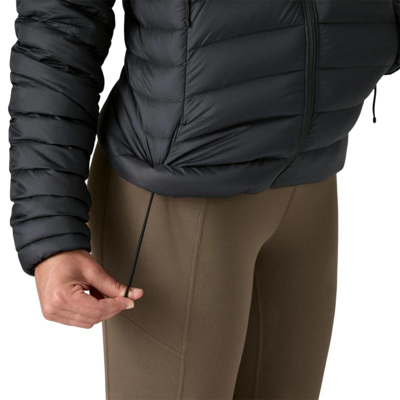 Patagonia Down Sweater™ Hoody dunjakke til dame leverer allsidig varme som egner seg til alle slags aktiviteter, utstyrt med et lett og vindtett skall av NetPlus® 100% resirkulert nylon fremstilt fra resirkulerte fiskegarn som hjelper med å redusere plastavfall i havet. Jakken er dessuten fylt med 800 FP 100% Responsible Down Standard dun. To glidelåslommer i sidene, samt én innvendig brystlomme gir sikker oppbevaring verdisaker, mens to innvendige drop-in-lommer gir plass til større gjenstander og tilbehør som hansker og lue. Den innvendige brystlommen dobler dessuten som pakkpose. Justerbar hette kombinert med elastiske, nylonkledte mansjetter og stramming nederst på kropp hjelper med å holde varmen inne. Lappesaker medfølger for on-the-go reparasjon. Patagonia Down Sweater™ Hoody dunjakke til dame er produsert ved en Fair Trade Certified™ fabrikk og er laget av bluesign®-godkjente materialer.
