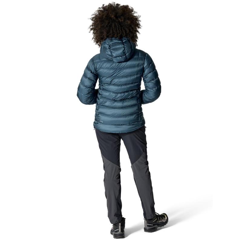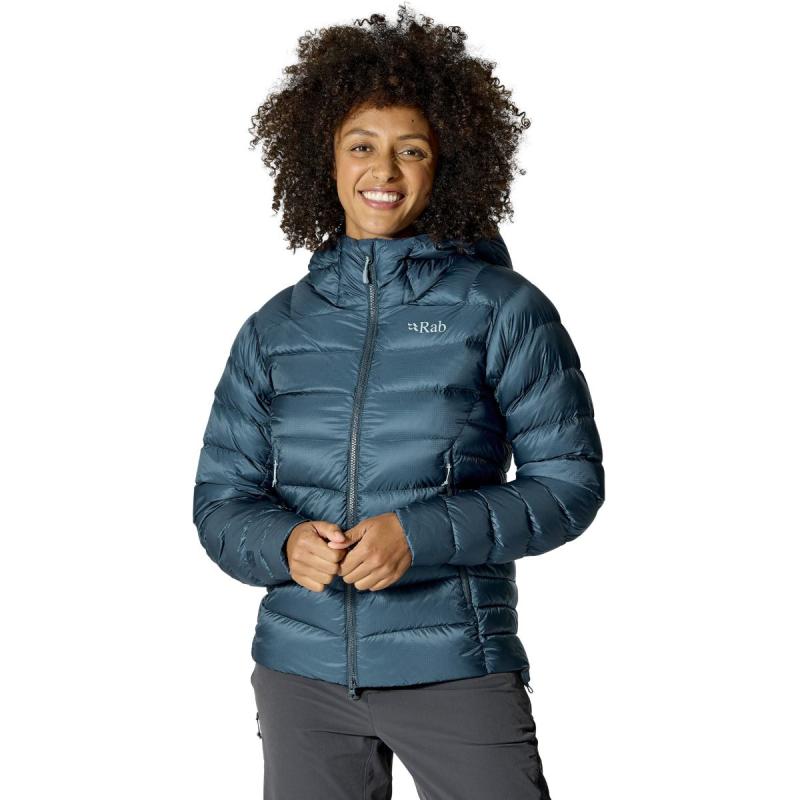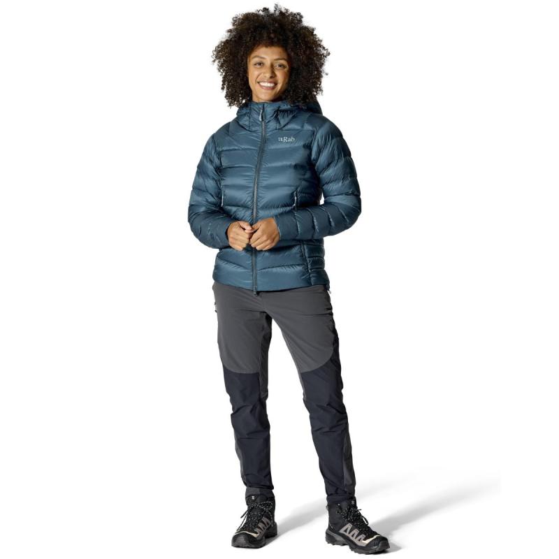 Rab Electron Pro dunjakke til dame er designet for alpinister og fjellentusiaster som ønsker god varme uten bulk. Jakken er utstyrt med en blanding av mikro- og medium bafler, strategisk plassert for å gi varme og bevegelsesfrihet der det trengs. Vann- og vindresistent skall av Pertex® Quantum Pro gir lett beskyttelse mot nedbør og snøføyk, mens Nikwax-behandlet 800FP europeisk gåsedun gir ypperlig varme med lav vekt. Electron Pro dunjakke egner seg godt til turer i teknisk terreng med en hjelmkompatibel hette og strategisk plasserte håndlommer som ikke kommer i veien for seletøy. Rab Electron Pro dunjakke er helt fri for fluorkarboner og består av minst 50% resirkulerte materialer. Jakken er også laget ved hjelp av fornybar energi.