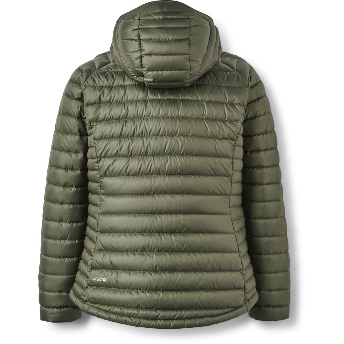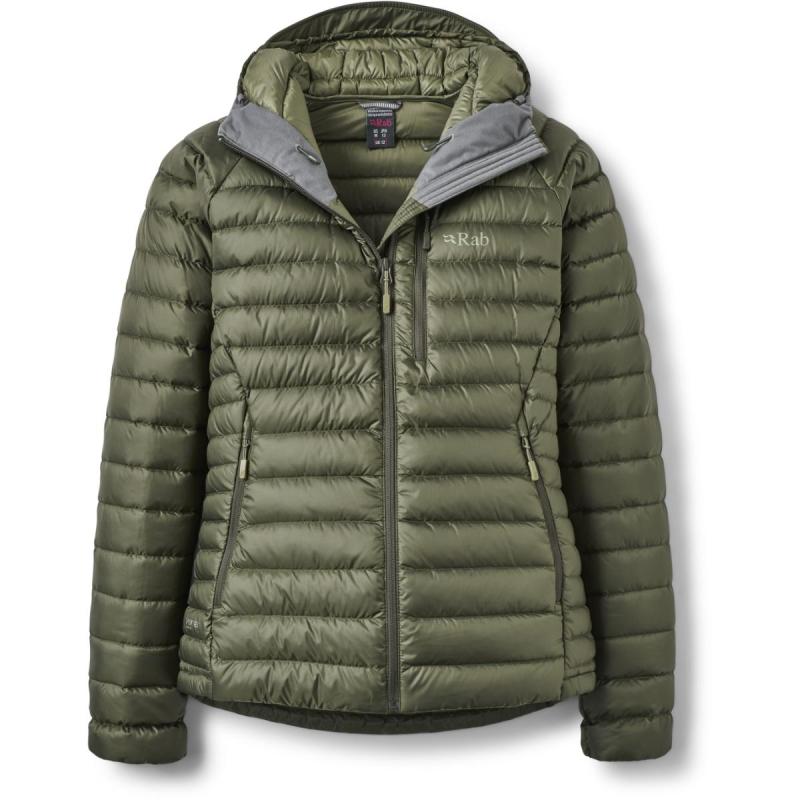 Rab Microlight Alpine dunjakke til dame er designet for helårsbruk og egner seg både til hverdags og på tur. Jakken er meget lett og gjør seg godt både som ytterlag på våren og tidlig høst, og som mellomlag vinterstid. Mikrobafler rundt kroppen og skuldrene, og mindre nanobafler under armene sørger for bedre pusteevne,mens hette med avstivet brem gir maskimal sikt uten å gå på bekostning av beskyttelse. Microlight Alpine dunjakke er fylt med resirkulert vannbestandig dun som gjør at isolasjonsevnen opprettholdes selvom jakken skulle bli våt. Overflaten er dessuten også DWR-behandlet. Den gjennomsydde konstruksjonen sørger for lav vekt og optimal bevegelsesfrihet.