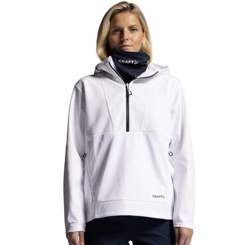 Craft NOR ADV Backcountry anorakk til dame er en avansert anorakk laget av 3-lags vind- og vanntett materiale med ypperlig stretch for god værbeskyttelse og bevegelsesfrihet. Halv glidelås i front kombinert med glidelåsåpning på venstre side og to sidelommer med meshfôr gir mulighet for ekstra ventilasjon ved behov, mens justerbar nederkant og hette sikrer en god passform. NOR ADV Backcountry anorakk brukes av utøvere på det norske langrennslandslaget.