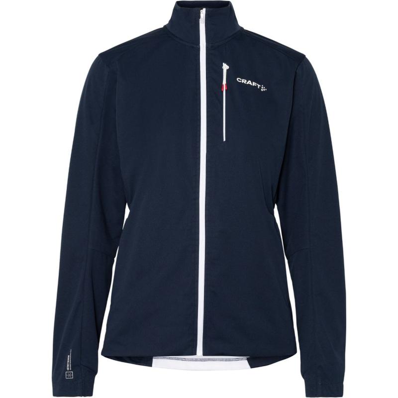 Craft NOR ADV Nordic Training skijakke til dame er en varm og pustende skijakke med lett vattering i front, laget for høyintensive treningsøkter. Jakken er utstyrt med vindtett og vannavvisende Ventair® 2-lags stretchmateriale i front og børstet polyestertrikot bak for ypperlig temperaturregulering. Fleecefôr med rutenettstruktur i front skaper dessuten små luftlommer, noe som gir ekstra varme og effektiv fukttransportering. To glidelåslommer i siden og én på brystet gir trygg oppbevaring av verdisaker og kan også brukes for ekstra ventilasjon om nødvendig. Et essensielt treningsplagg som benyttes av det norske landslaget.