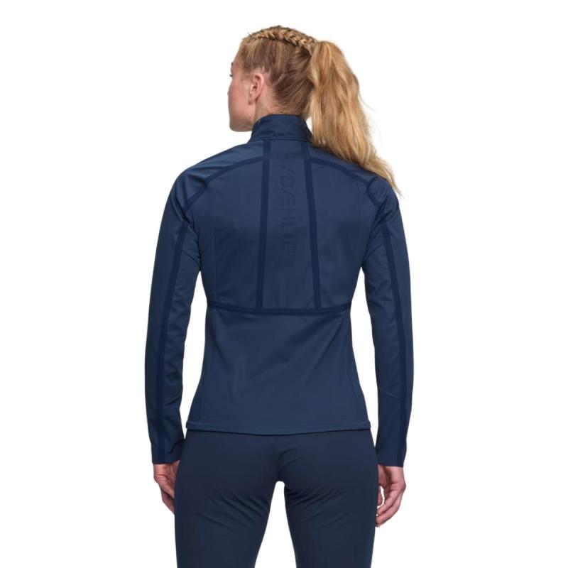 Dæhlie Premium 2.0 skijakke til dame er utstyrt med samme teknologi som Raw 6.0-jakken, designet for høyintensiv trening. Jakkens hovedmateriale består av 3-lags softshell, laminert med PU-membran for ypperlig værbeskyttelse, videre hjulpet av teipede sømmer i utsatte områder. Strategisk plasserte elastiske paneler på ryggen og under armene sikrer optimal bevegelsesfrihet og ventilasjon, videre hjulpet av laserskjærte hull på ryggen som staver ut DÆHLIE. Artikulerte ermer, elastiske mansjetter og justerbar stropp nederst på kroppen sikrer en komfortabel passform, mens glidelåslommer i sidene gir trygg oppbevaring av verdisaker. Sist, men ikke minst: Premium 2.0 skijakke består av minst 80% bluesign®-godkjente materialer.