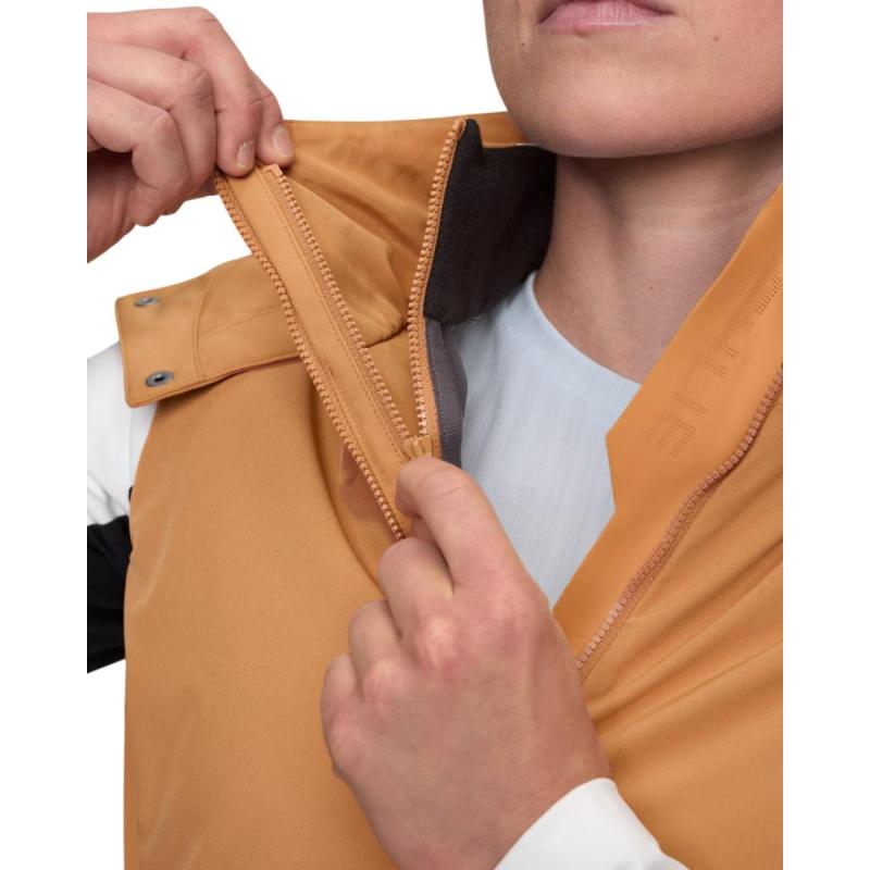 Vesten er laget av et tøyelig skallmateriale og utstyrt med lett Thindown® dunisolasjon for ypperlig varme. Den avtakbare hetten (som også kan festes til jakken) gir umiddelbar værbeskyttelse ved behov, mens en lett tilgjengelig glidelås på ryggen åpner en meshkanal for ekstra lufting. Elastiske ermeåpninger sitter tett rundt skuldrene og sørger for å holde varmen inne og kulden ute, mens glidelåslommer i sidene gir trygg oppbevaring av verdisaker.