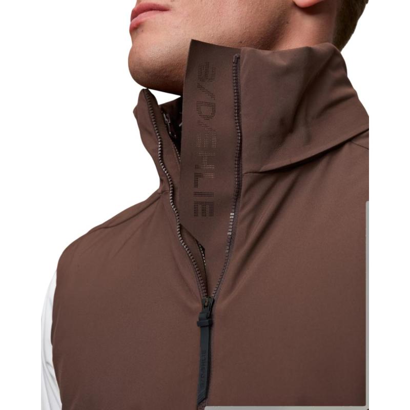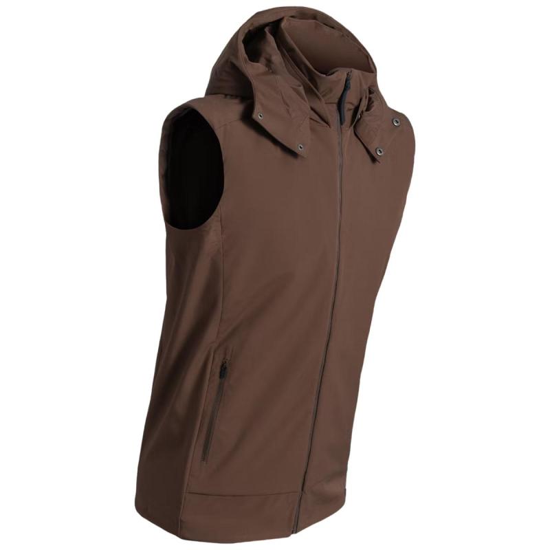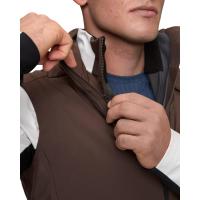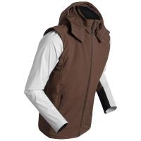 Vesten er laget av et tøyelig skallmateriale og utstyrt med lett Thindown® dunisolasjon for ypperlig varme. Den avtakbare hetten (som også kan festes til jakken) gir umiddelbar værbeskyttelse ved behov, mens en lett tilgjengelig glidelås på ryggen åpner en meshkanal for ekstra lufting. Elastiske ermeåpninger sitter tett rundt skuldrene og sørger for å holde varmen inne og kulden ute, mens glidelåslommer i sidene gir trygg oppbevaring av verdisaker.