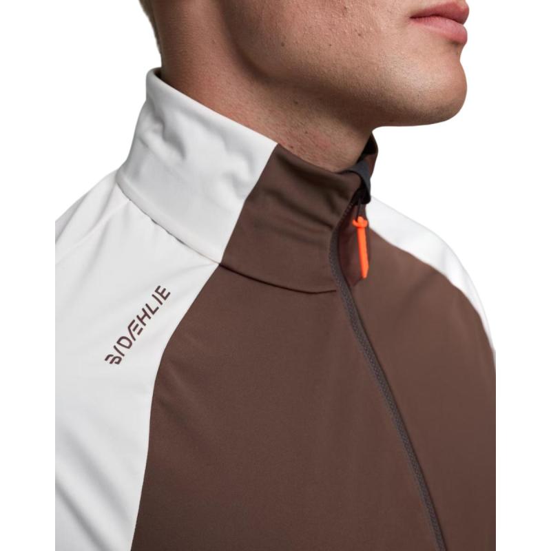 Jakken er laget av myk og tøyelig softshell, utstyrt med strategisk plasserte ventilasjonspaneler av robust og tøyelig materiale for ypperlig bevegelsesfrihet og pusteevne. Laserskjærte hull staver ut DÆHLIE på ryggen for ekstra ventilasjon. Artikulerte ermer, elastiske mansjetter og strammestropp nederst på kroppen gir en sikker og behagelig passform, mens glidelåslommer i sidene gir sikker oppbevaring av verdisaker. Hurtigtørkende fôr sørger for å holde deg tørr og komfortabel uansett intensitet.