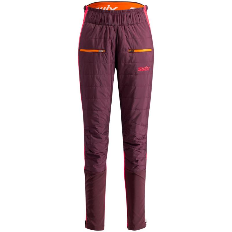 Swix Horizon skibukse til dame er en teknisk og allsidig langrennsbukse i vind- og vannavvisende materiale som også egner seg godt til tur eller generell trening på kalde dager. Buksen har en ettersittende passform med god elastisitet og bred strikk i livet for ypperlig bevegelsesfrihet, mens PrimaLoft® Silver syntetisk isolasjon på lår og over knær gir ekstra varme der det trengs mest. Glidelåslommer i front og på ryggen sørger for trygg oppbevaring av verdisaker.
