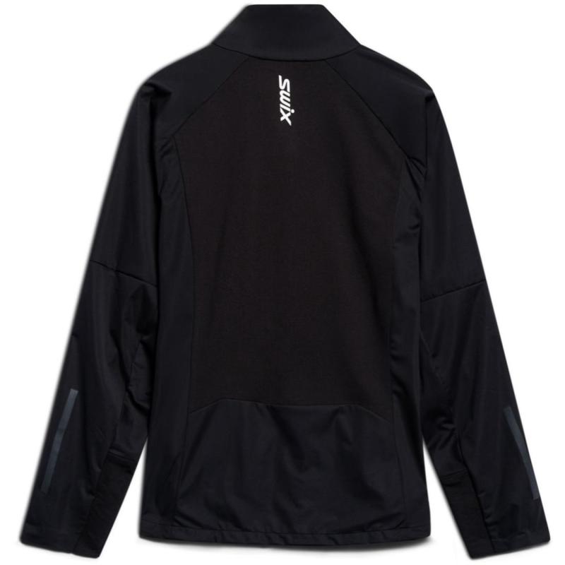 Swix Nordic XC skijakke til herre er en allsidig langrennsjakke av 3-lags softshell for både rolige og intensive økter. Jakken er lett og tøyelig for ypperlig bevegelsesfrihet, mens pustende paneler sørger for god ventilasjon selv ved høyere aktivitetsnivå. Refleksdetaljer gir bedre synlighet under dårlige lysforhold, mens en praktisk brystlomme samt en lomme på ryggen gir trygg oppbevaring av verdisaker. En ypperlig treningspartner til alle slags økter.
