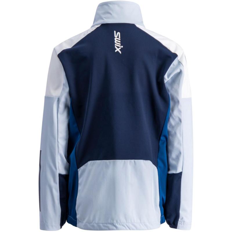 Swix Nordic XC skijakke til junior er en allsidig langrennsjakke av 3-lags softshell for både rolige og intensive økter. Jakken er lett og tøyelig for ypperlig bevegelsesfrihet, mens pustende paneler sørger for god ventilasjon selv ved høyere aktivitetsnivå. Refleksdetaljer gir bedre synlighet under dårlige lysforhold, mens en praktisk brystlomme samt en lomme på ryggen gir trygg oppbevaring av verdisaker. En ypperlig treningspartner til alle slags økter.