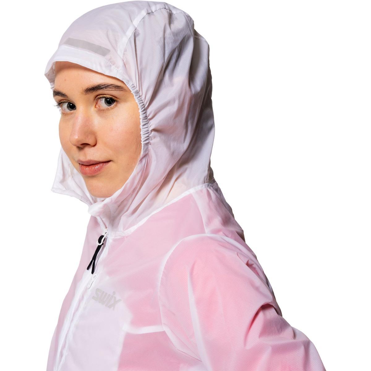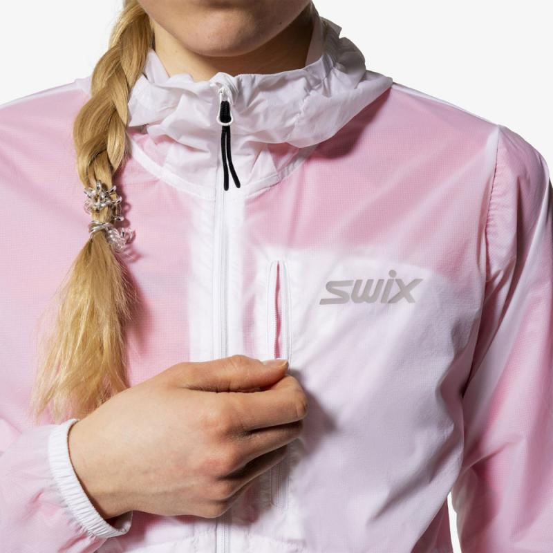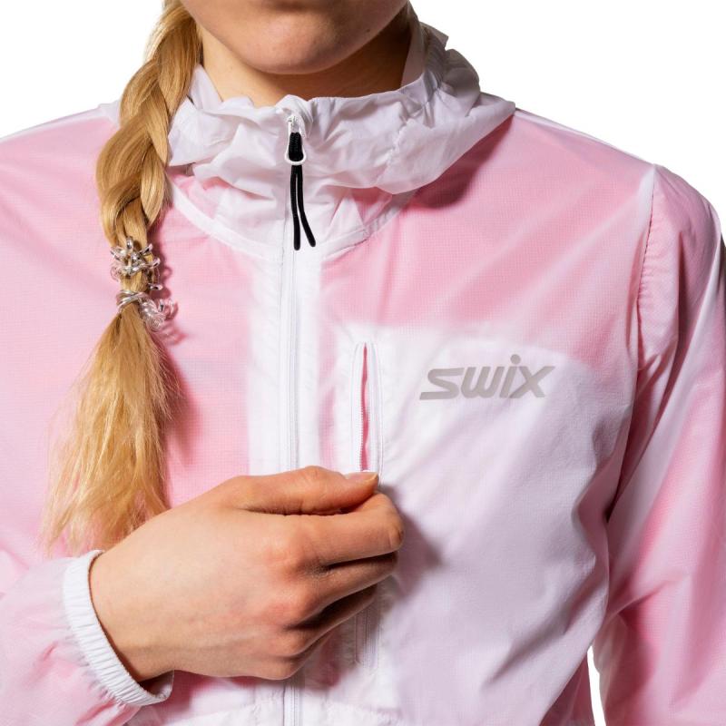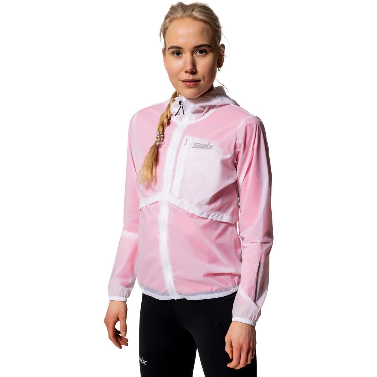 Swix Pace Wind Light løpejakke til dame er en vindavvisende jakke for løpeturer under skiftende værforhold. Jakken er lett å folde sammen og ta med seg i løpesekk for ummiddelbar beskyttelse ved væromslag. Elastiske mansjetter, hette og fald sørger for at jakken holder seg på plass under aktivitet, mens ventilasjonspaneler langs bryst og rygg sørger for god temperaturregulering. Reflektive detaljer på hette og ermer gir økt synlighet ved dårlige lysforhold, mens brystlomme i front gir trygg oppbevaring av verdisaker.