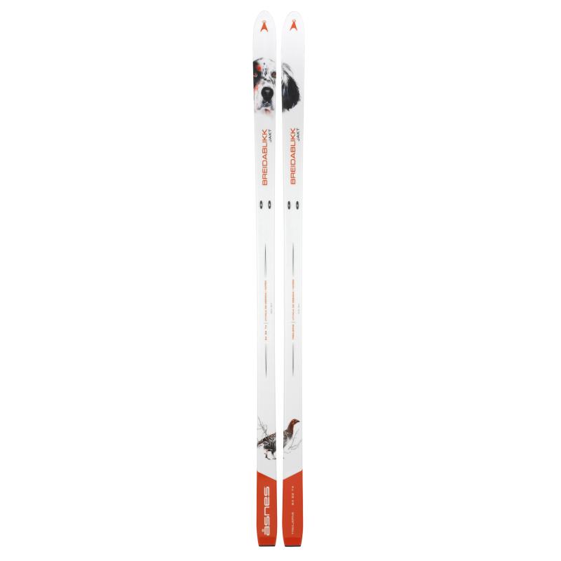 Åsnes Breidablikk fjellski er utviklet med tanke på de som bruker hund til jakt og fritid, den har derfor ikke stålkant. Skien har en innsving på 22mm, kombinert med en myk tupp for en ski som er lett å svinge med. Skien er lett å håndtere i ulikt og krevende terreng og flyter godt i snøen. Til denne modellen anbefales X-Skin 58mm kortfell, men dersom du ønsker mer glid på flate partier er 45mm Mohair også et godt alternativ.